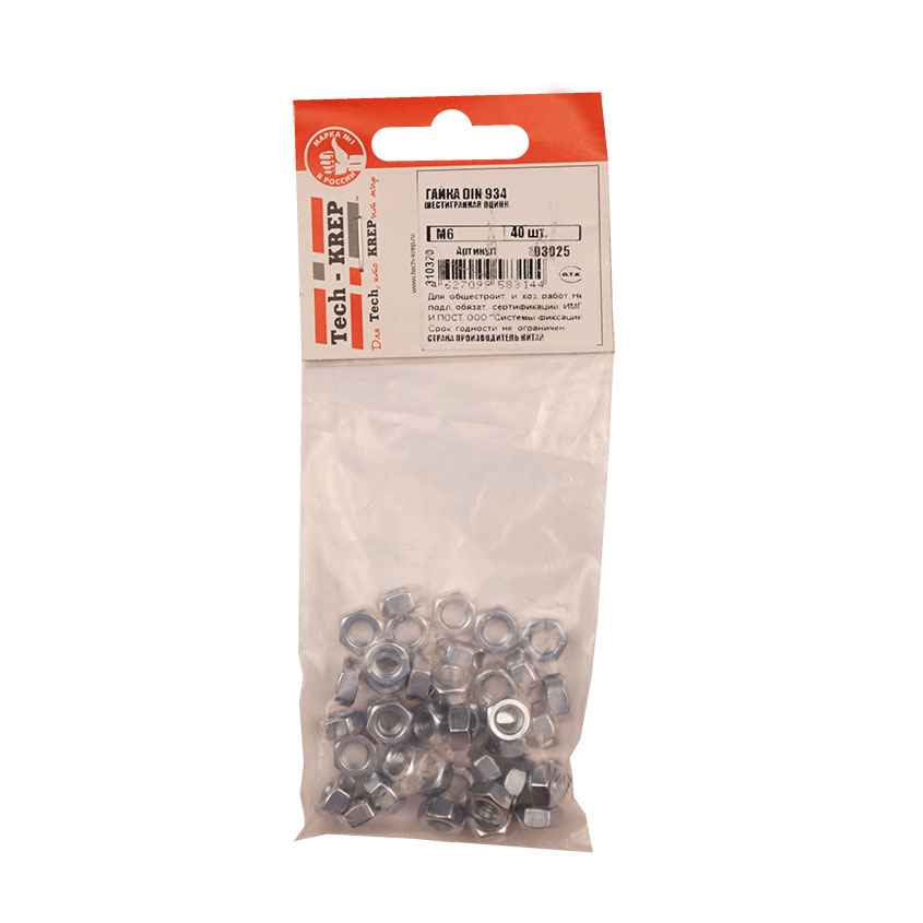 Гайка DIN934 оцинкованная М6 шестигранная гайка с внутренней резьбой для создания резьбового соединения с различными крепежными элементами.