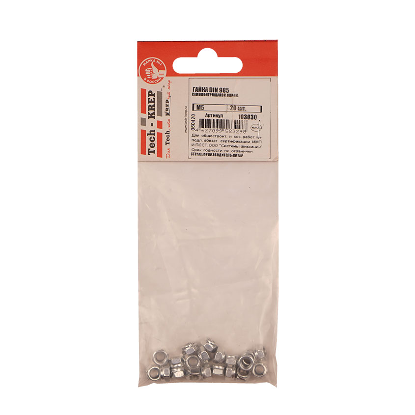 Гайка DIN985 оцинкованная М5 шестигранная гайка с внутренней резьбой для создания резьбового соединения с различными крепежными элементами.