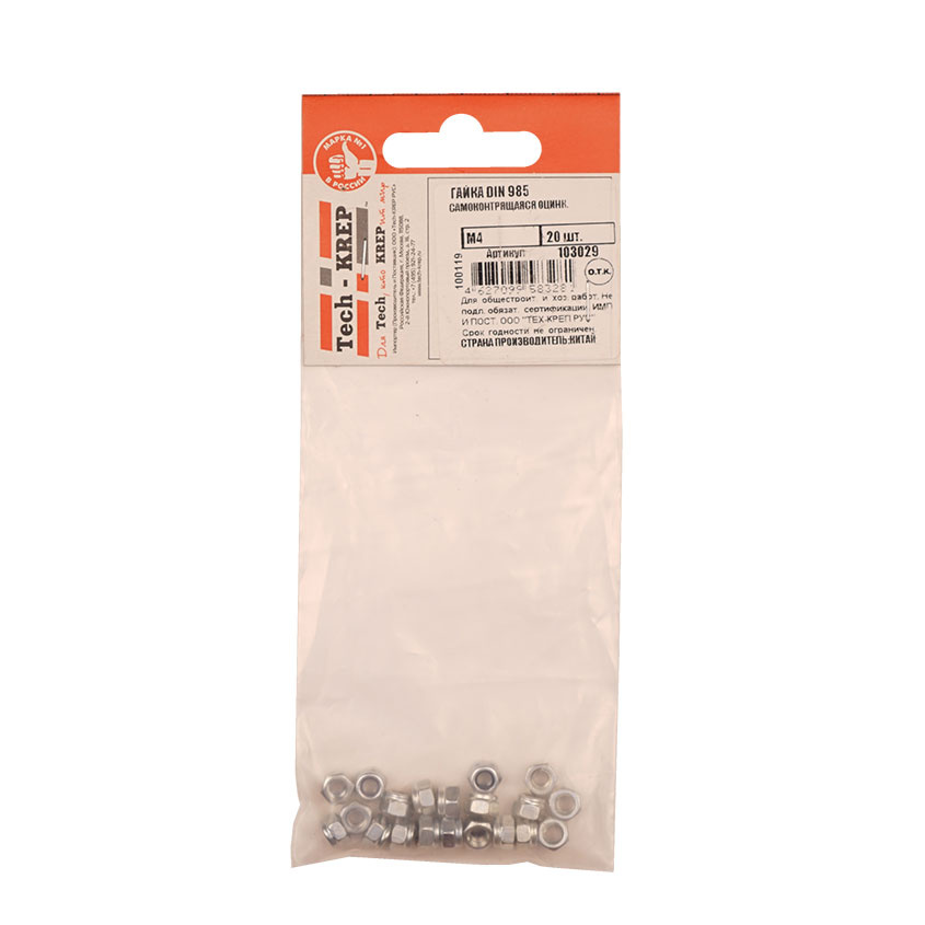 Гайка DIN985 оцинкованная М 4 шестигранная гайка с внутренней резьбой для создания резьбового соединения с различными крепежными элементами.