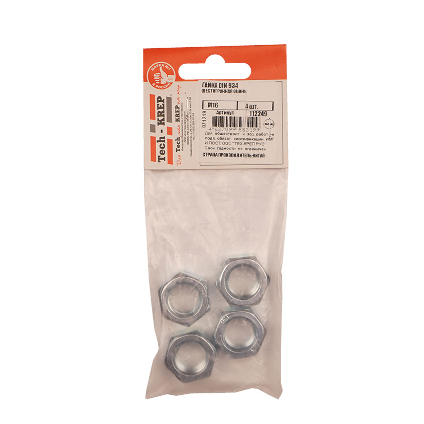 Гайка DIN934 оцинкованная М16 шестигранная гайка с внутренней резьбой для создания резьбового соединения с различными крепежными элементами.