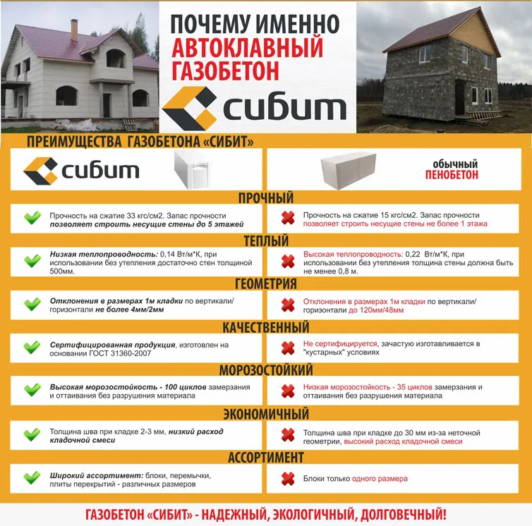 1. Прочный. Запас прочности позволяет строить несущие стены до 5 этажей;