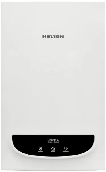Deluxe Comfort – настенный газовый двухконтурный котел с закрытой камерой сгорания. В новинке были сохранены преимущества первого поколения: вентилятор с изменяемой частотой вращения, дифференциальный датчик давления воздуха, защита контроллера от перепадов напряжения SMPS-чипом. Значительные изменения коснулись гидравлических компонентов, намного упрощен процесс снятия таких узлов, как: вторичный теплообменник, трехходовой клапан, а также узлы гидрогруппы. Кроме того, был изменен принцип контроля наличия теплоносителя в отопительном контуре: датчик протока в контуре отопления заменился на датчик давления теплоносителя. Были изменены присоединительные размеры камеры сгорания к дымоходу, и сейчас для подключения коаксиального комплекта диаметром 60/100 не требуется переходник с 75-го диаметра, то есть к котлу теперь подходит универсальный дымоход и нет необходимости приобретать специальный коаксиал Navien.