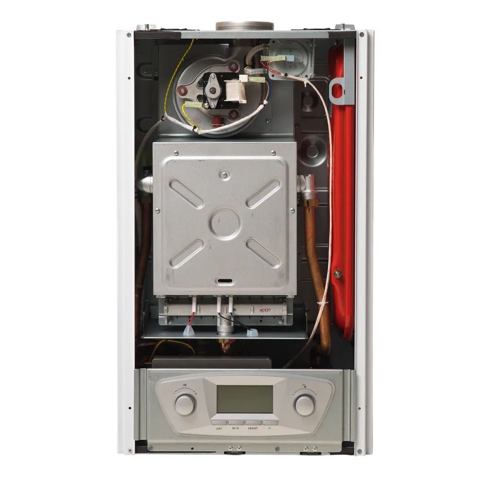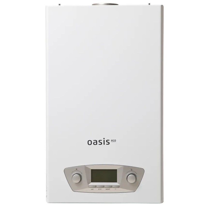 Настенный двухконтурный газовый котел Oasis Eco RE-16 с закрытой камерой сгорания оснащен двумя раздельными высококачественными теплообменниками, циркуляционным насосом (в насос встроен автоматический воздушный клапан), расширительным баком 6 литров, предохранительным клапаном (3 бар). Первичный теплообменник изготовлен из меди, поверхность которого защищена высокотемпературной краской на алюминиевой основе для защиты от кислотной коррозии, вторичный пластинчатый теплообменник — из нержавеющей стали, горелка — из нержавеющей стали, патрубки — медные. Функция автоматической модуляции регулирует подачу газа на горелку, за счет чего достигается заданная температура, экономится газ и повышается эффективность котла.