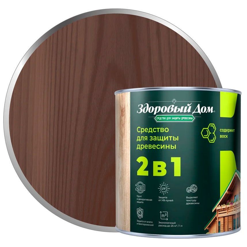 Состав деревозащитный Здоровый Дом 2в1 алкидный, палисандр 0,8л