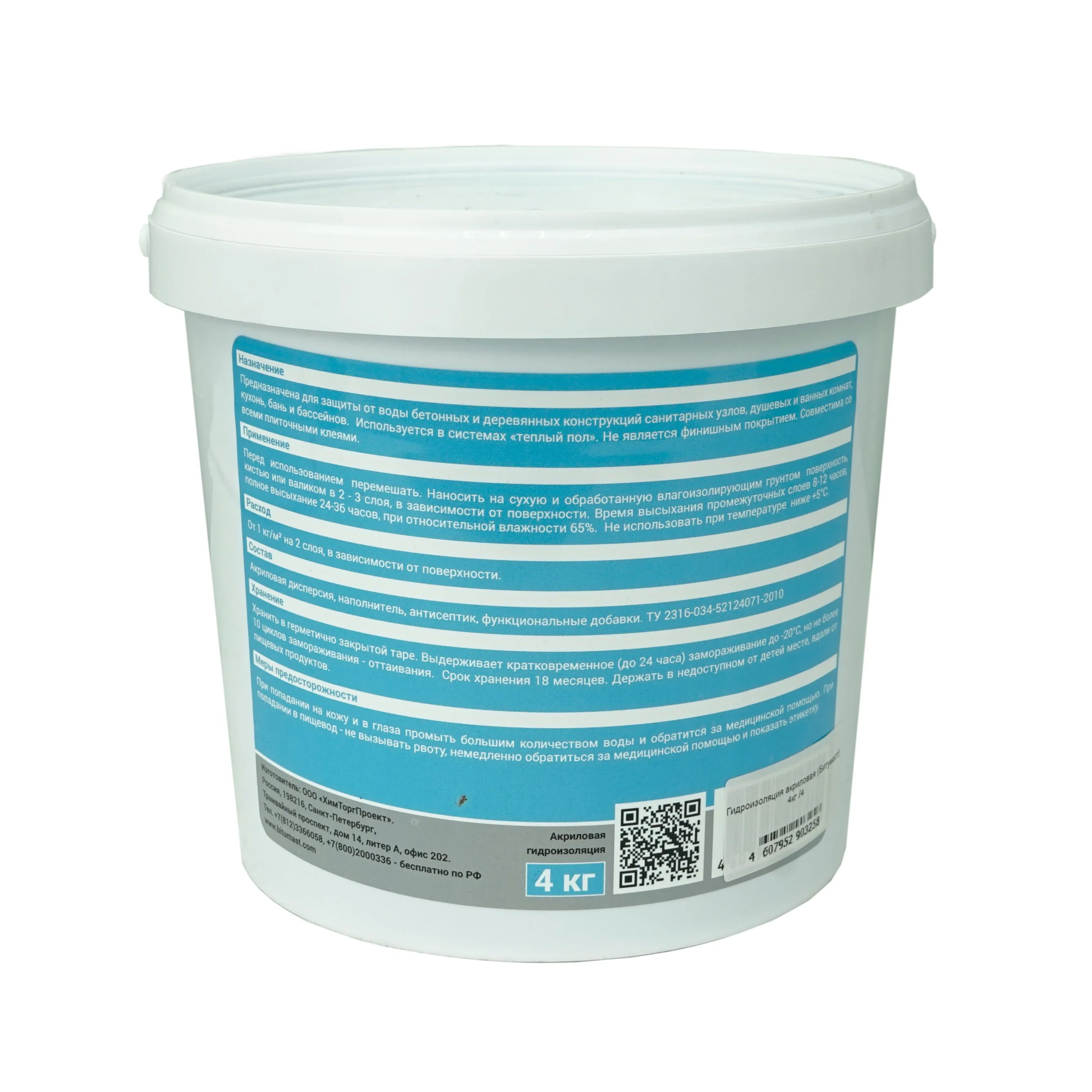 Акриловая гидроизоляция для внутренних работ - предназначена для защиты от воды бетонных и железобетонных систем бассейнов, санитарных узлов, душевых и ванных комнат, кухонь, чердаков, крыш.