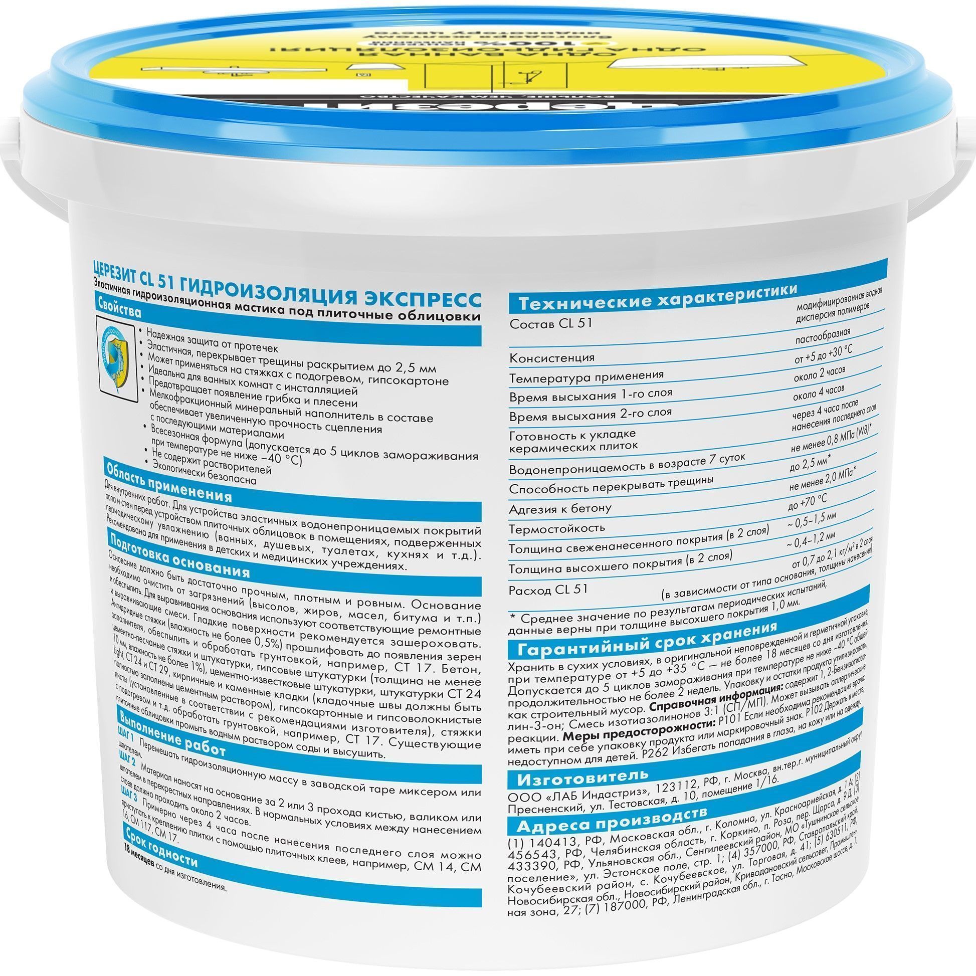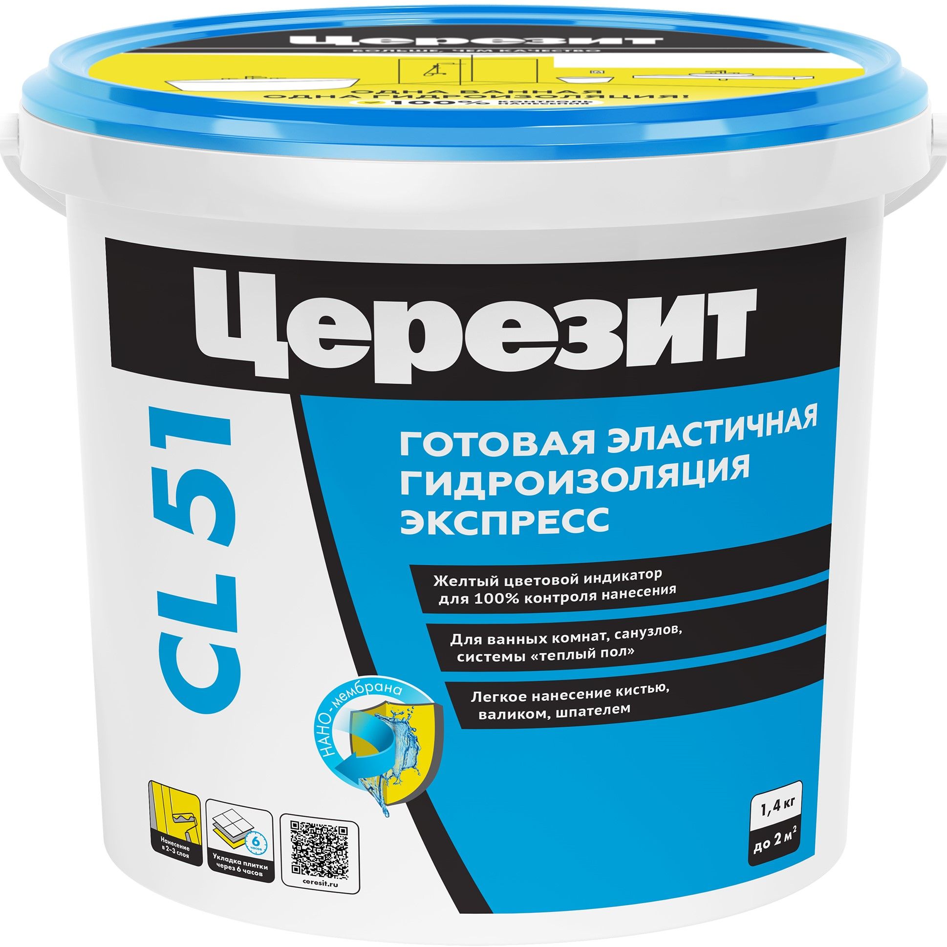 Гидроизоляция Церезит CL 51 – однокомпонентная полимерная масса для устройства эластичных водонепроницаемых покрытий под плиточные облицовки.