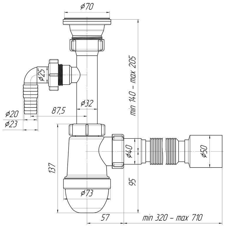 Предназначен для подключения мойки к канализации.