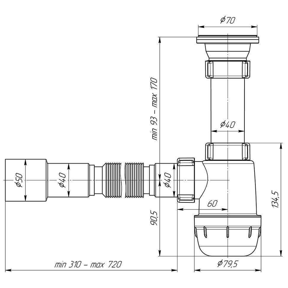 Сифон для мойки 1 1/2"х40, с гибкой трубой 40х40/50 (А0115) цена - купить в Барнауле, Бийске. Размеры, характеристики, фото в интернет-магазине.