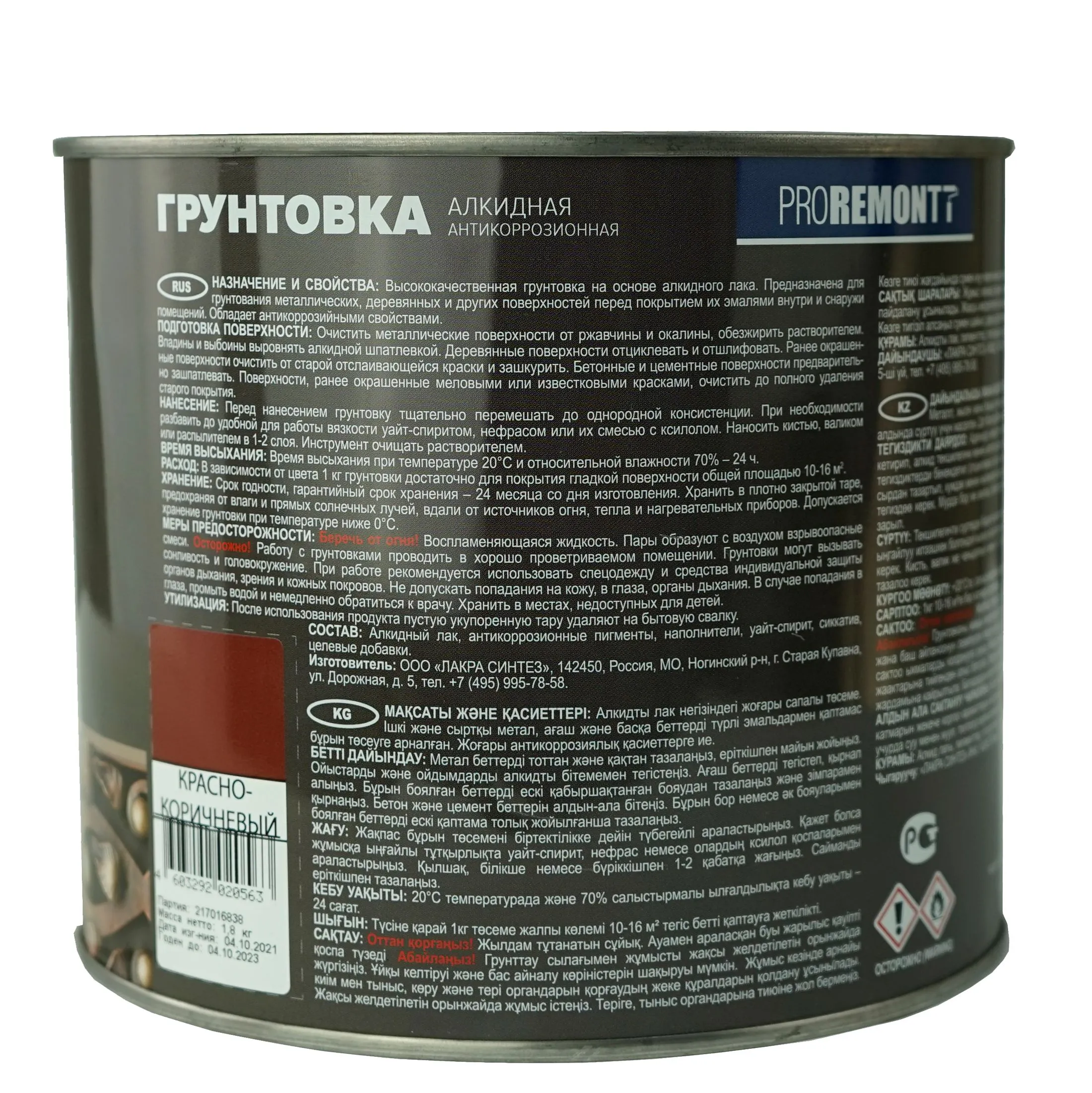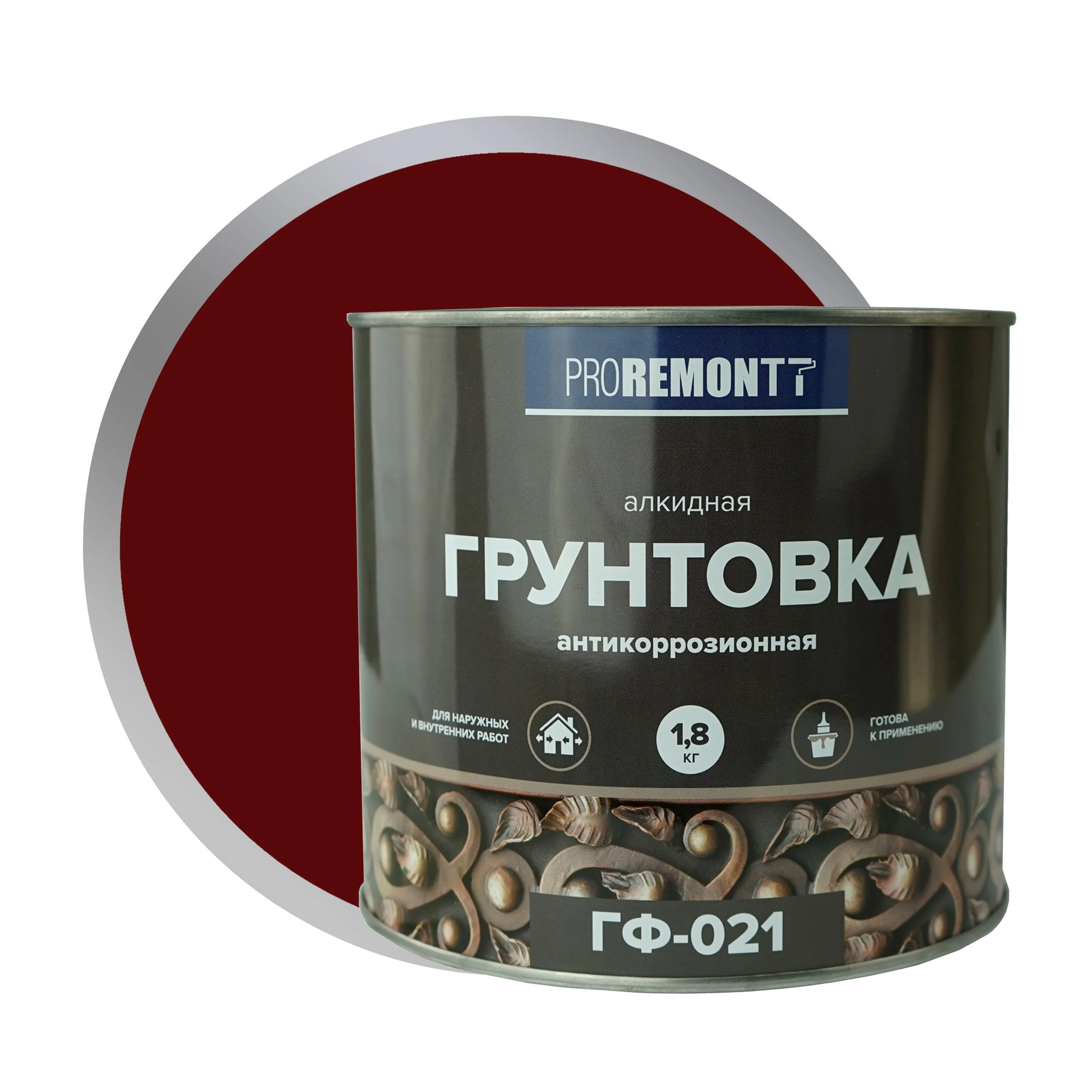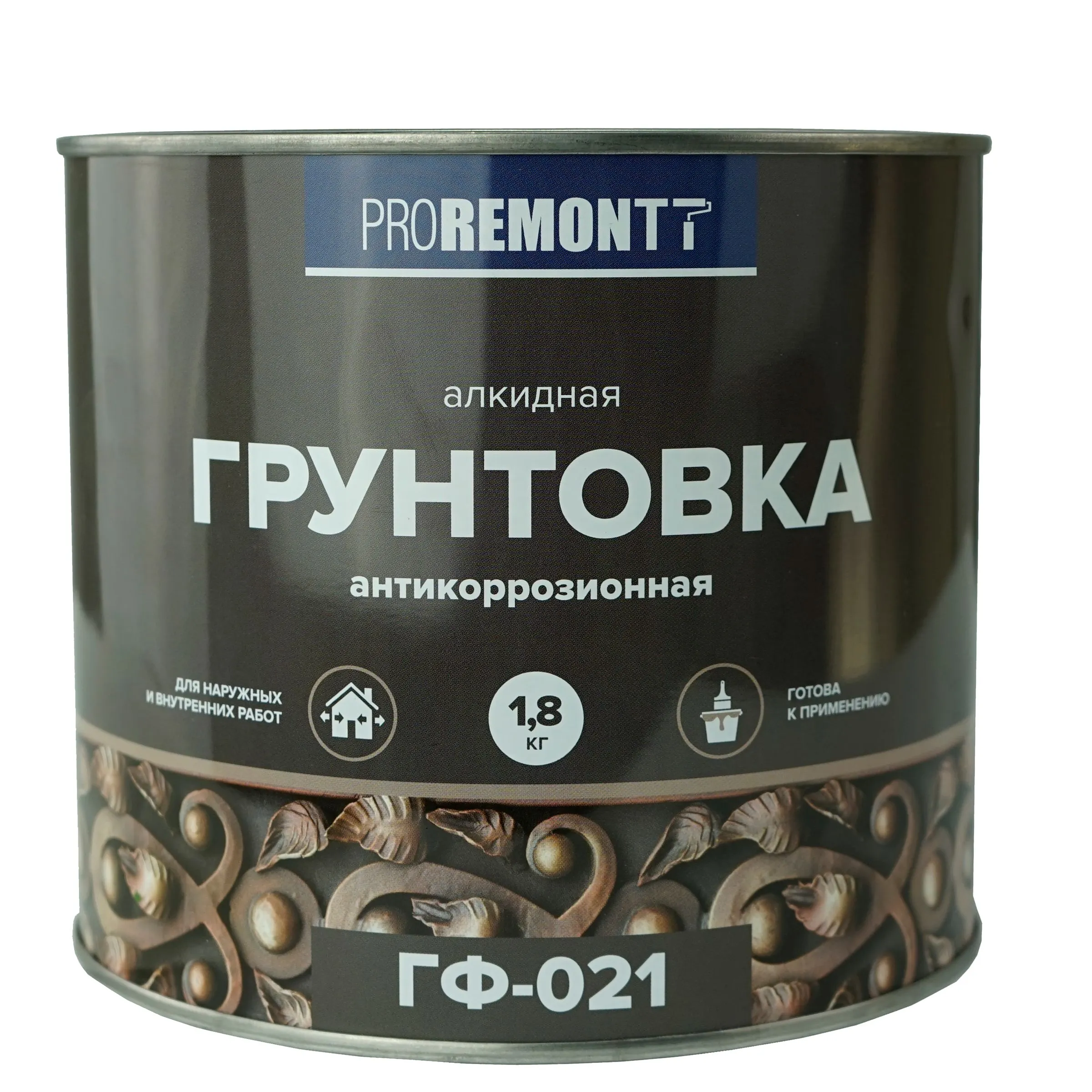 Грунт ГФ-021 Proremontt красно-коричневый на основе алкидного лака, обеспечивающая прочное соединение лакокрасочных материалов с окрашиваемой поверхностью и предупреждающая их отслаивание от поверхности.
