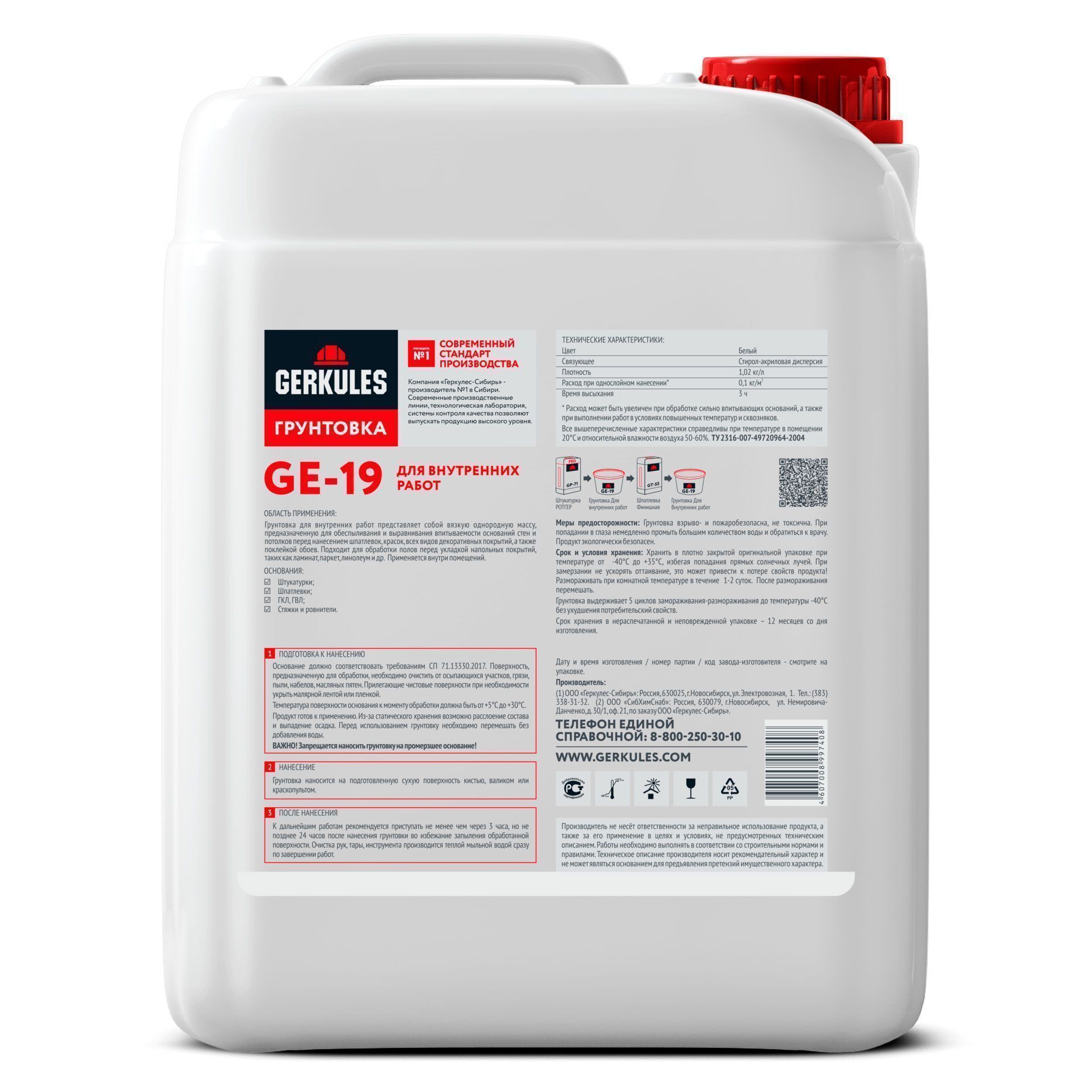 Грунтовка GE-19 хорошо связывает пыль. Обеспечивает прочность и долговечность обработанной поверхности. Необходимый компонент для качественного ремонта. Экологически чистая. Морозостойкая. В случае замораживания грунтовку следует разморозить при комнатной температуре и перемешать до получения однородной массы.
