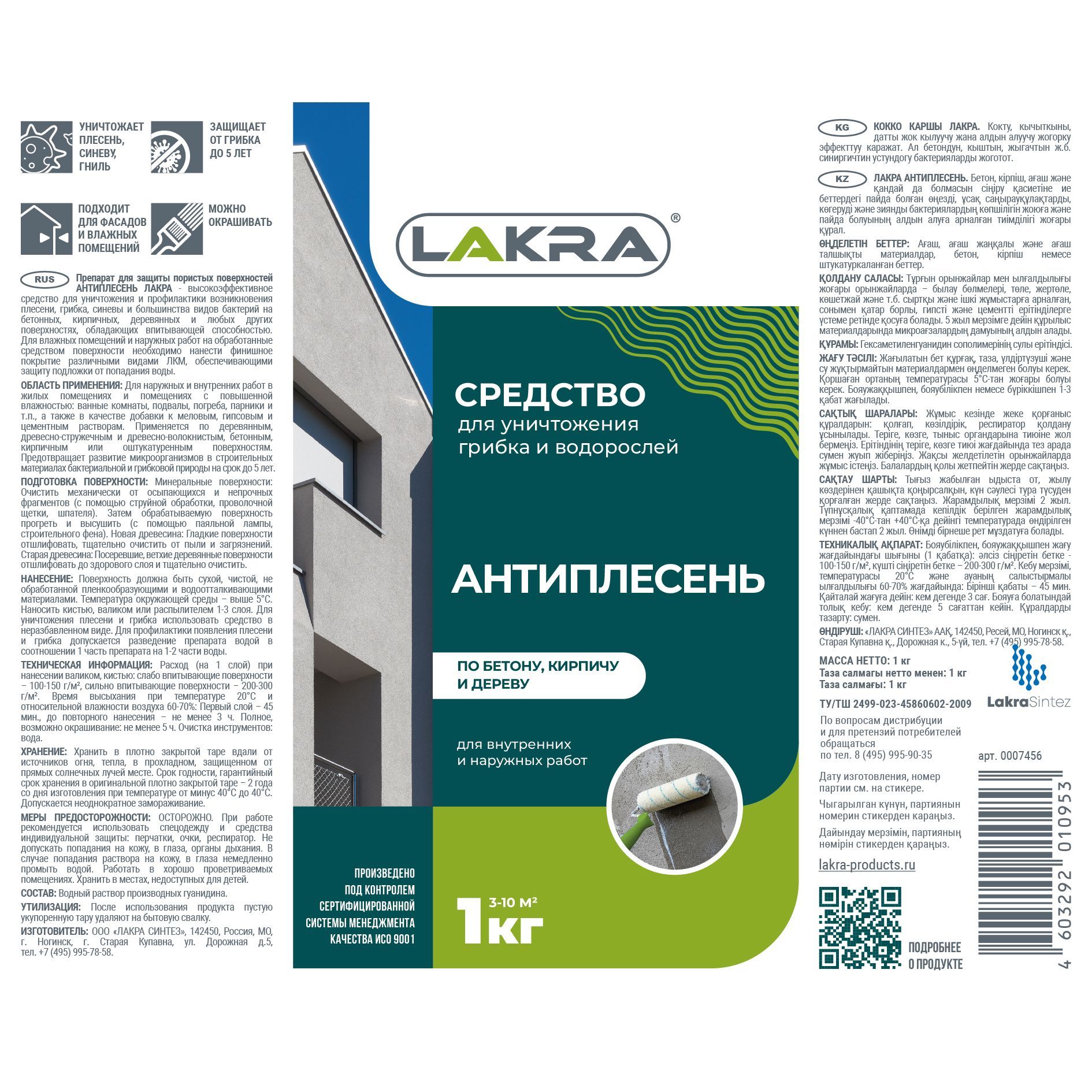 Высокоэффективное средство для уничтожения и профилактики возникновения плесени, грибка, синевы и большинства видов бактерий на бетонных, кирпичных, деревянных и любых других поверхностях, обладающих впитывающей способностью. Состав: