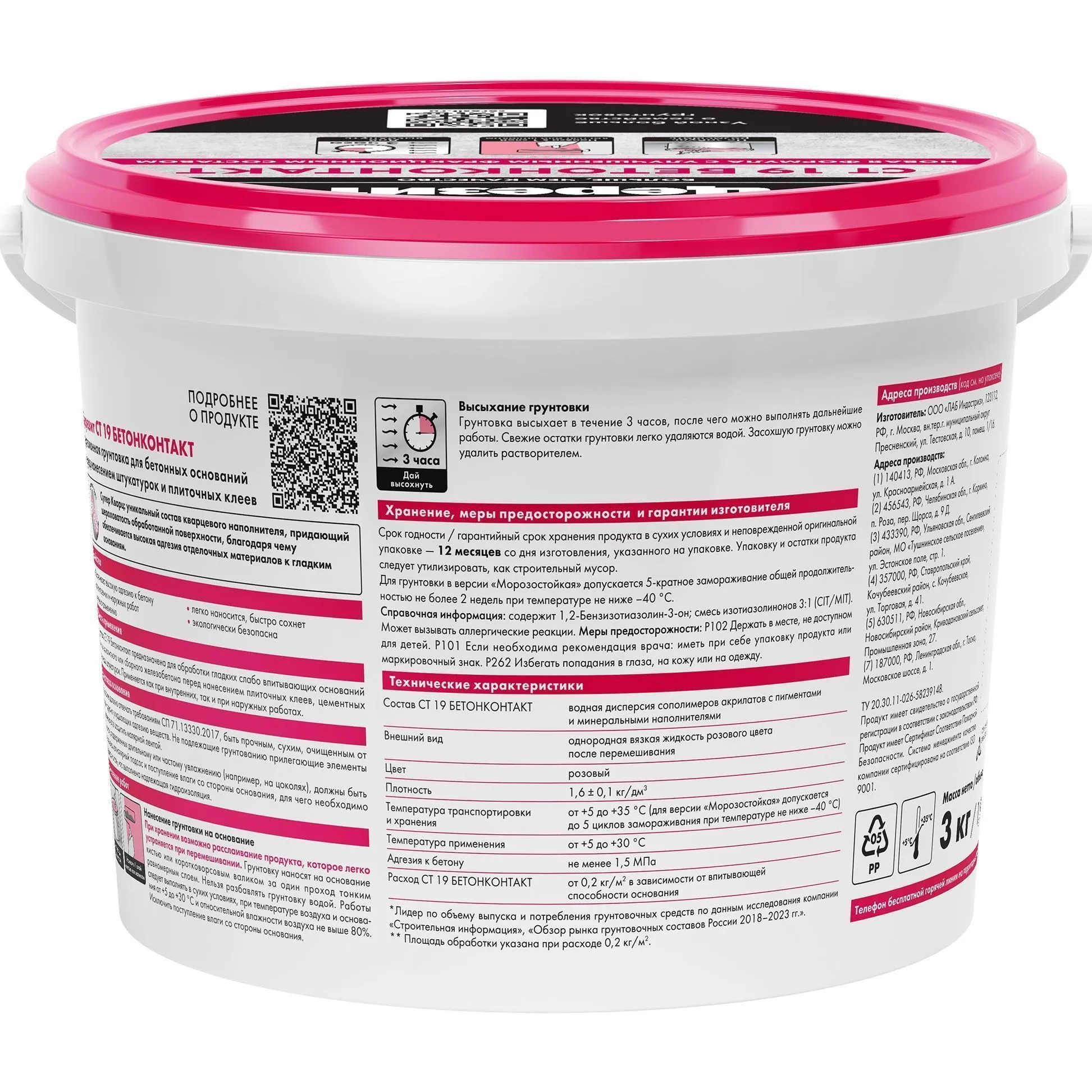 - Полное высыхание грунтовки происходит через 3 часа;