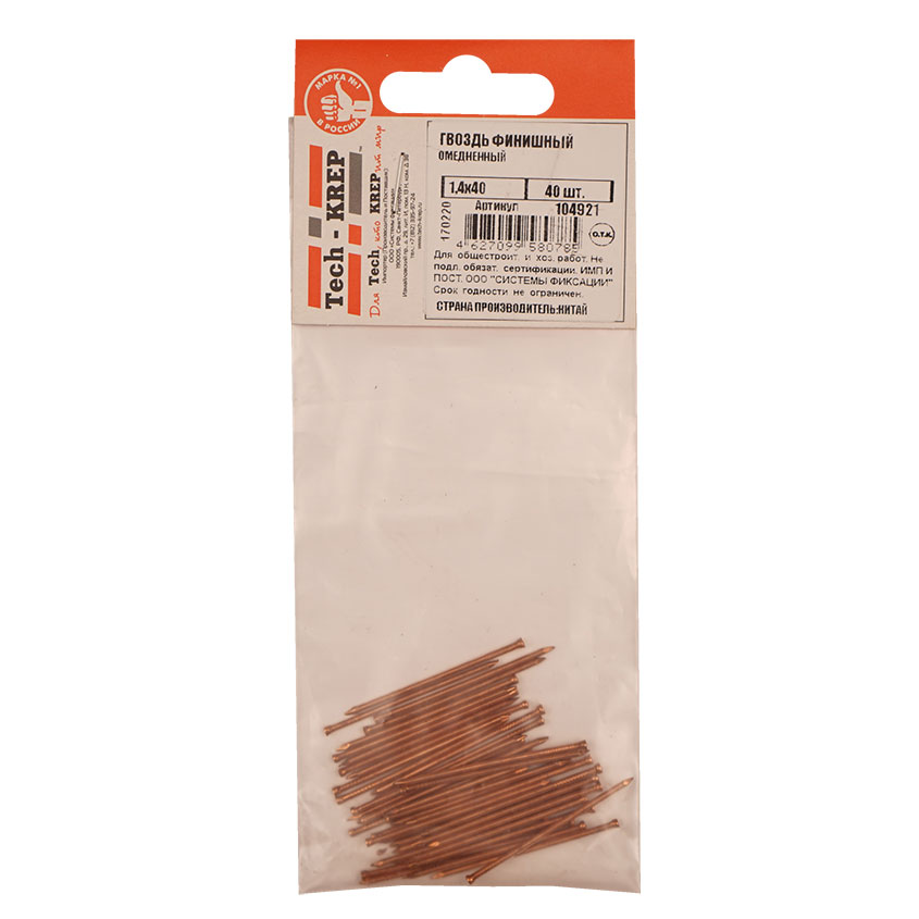 Гвоздь финишный омедненный 1,4х40мм, пакет 40шт цена - купить в Барнауле, Бийске. Размеры, характеристики, фото в интернет-магазине.