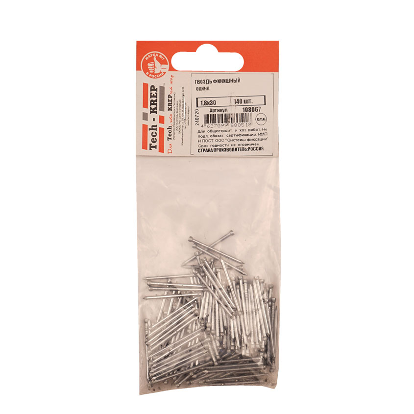 Гвоздь финишный оцинкованный 1,8х30мм, пакет 140шт цена - купить в Барнауле, Бийске. Размеры, характеристики, фото в интернет-магазине.
