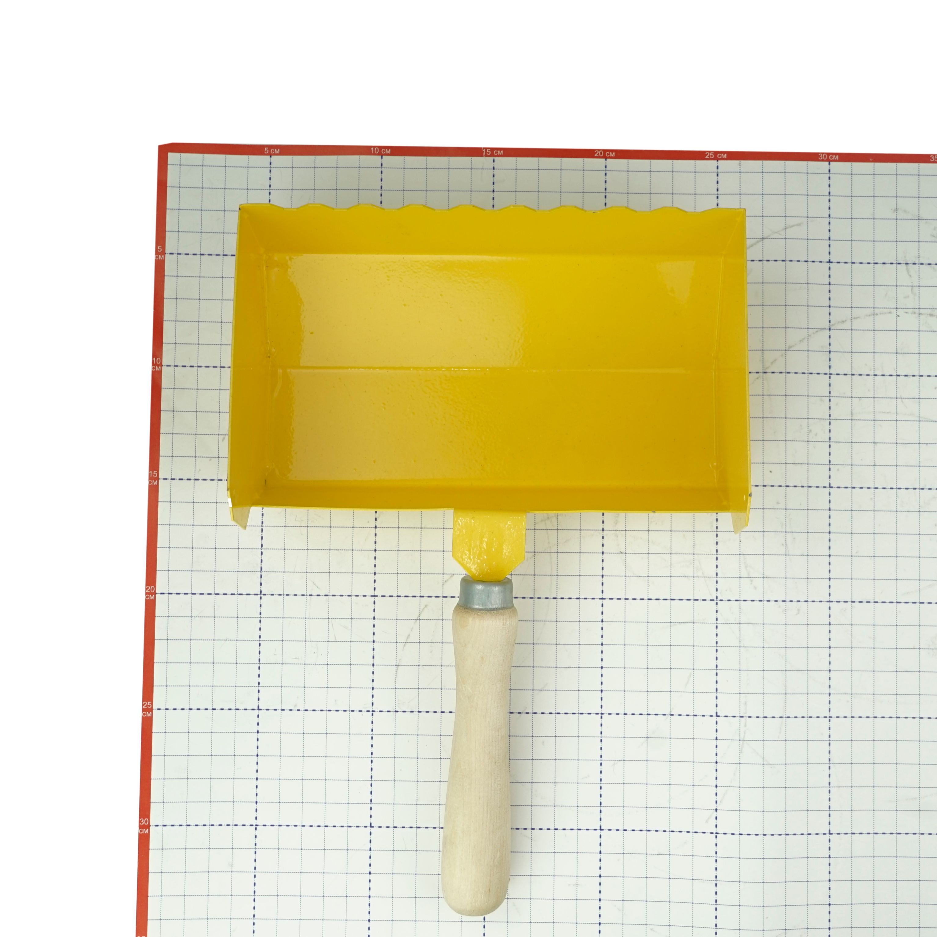 Кельма стальная с полимерным покрытием для газобетона в форме ковша с шириной рабочей зоны 200мм и пластиковой ручкой.