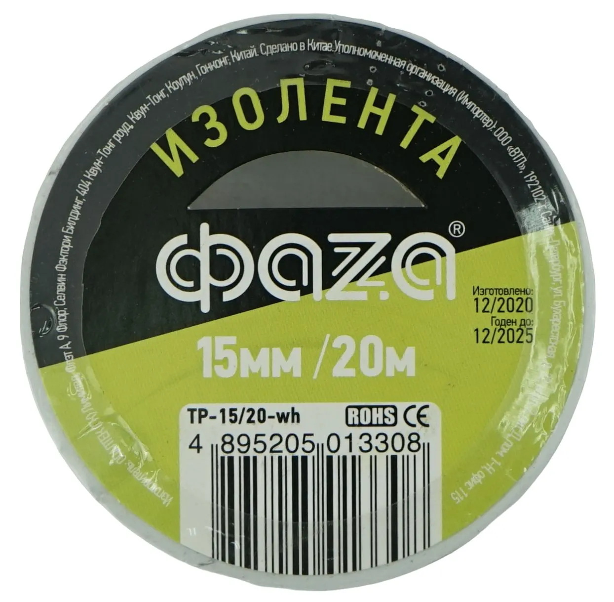Изолента ПВХ белая 15мм 20м