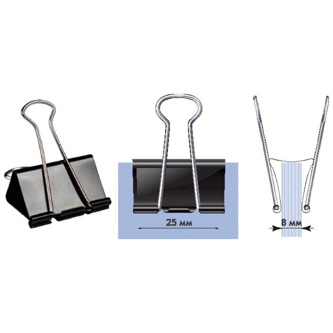 Металлические зажимы для скрепления документов без использования степлеров.
