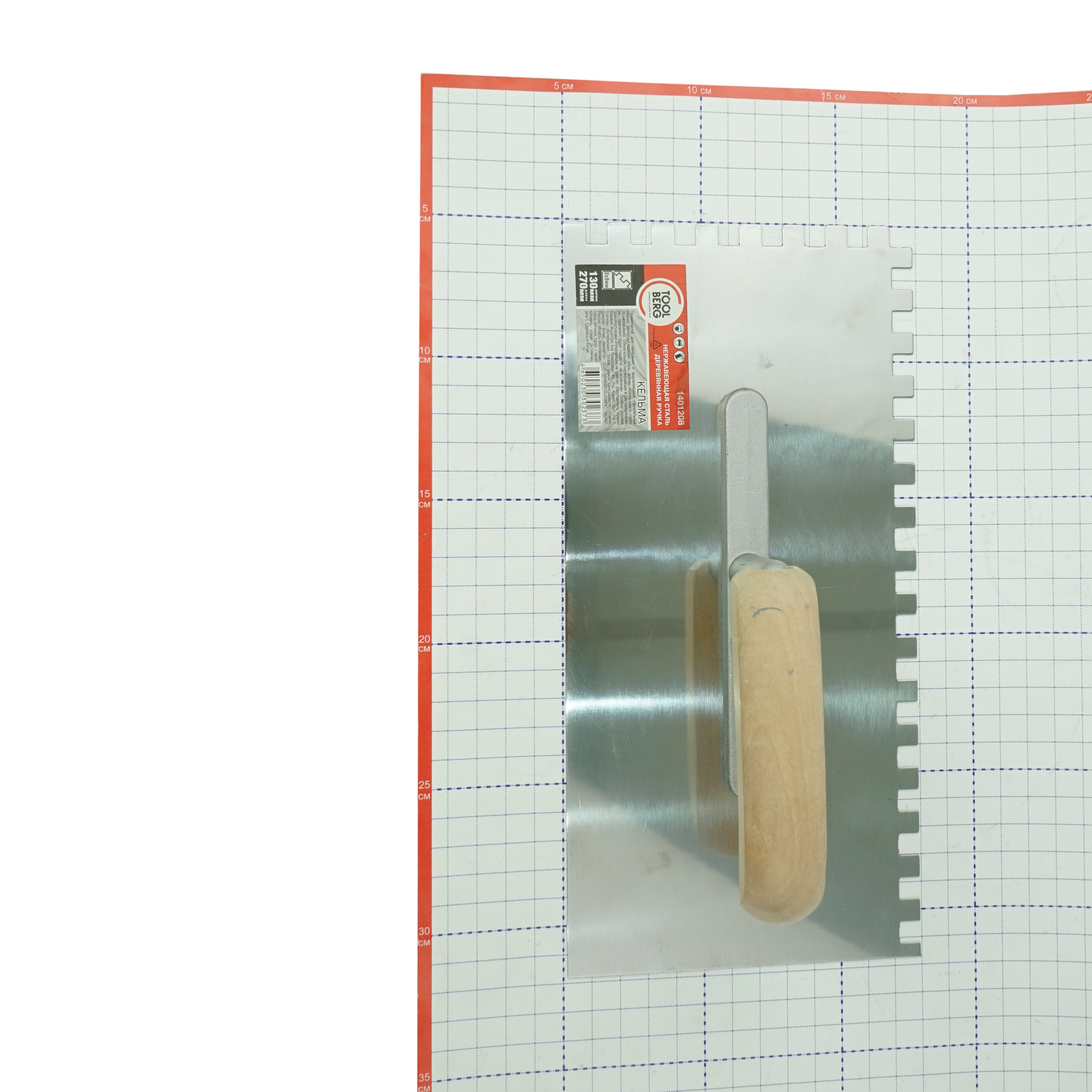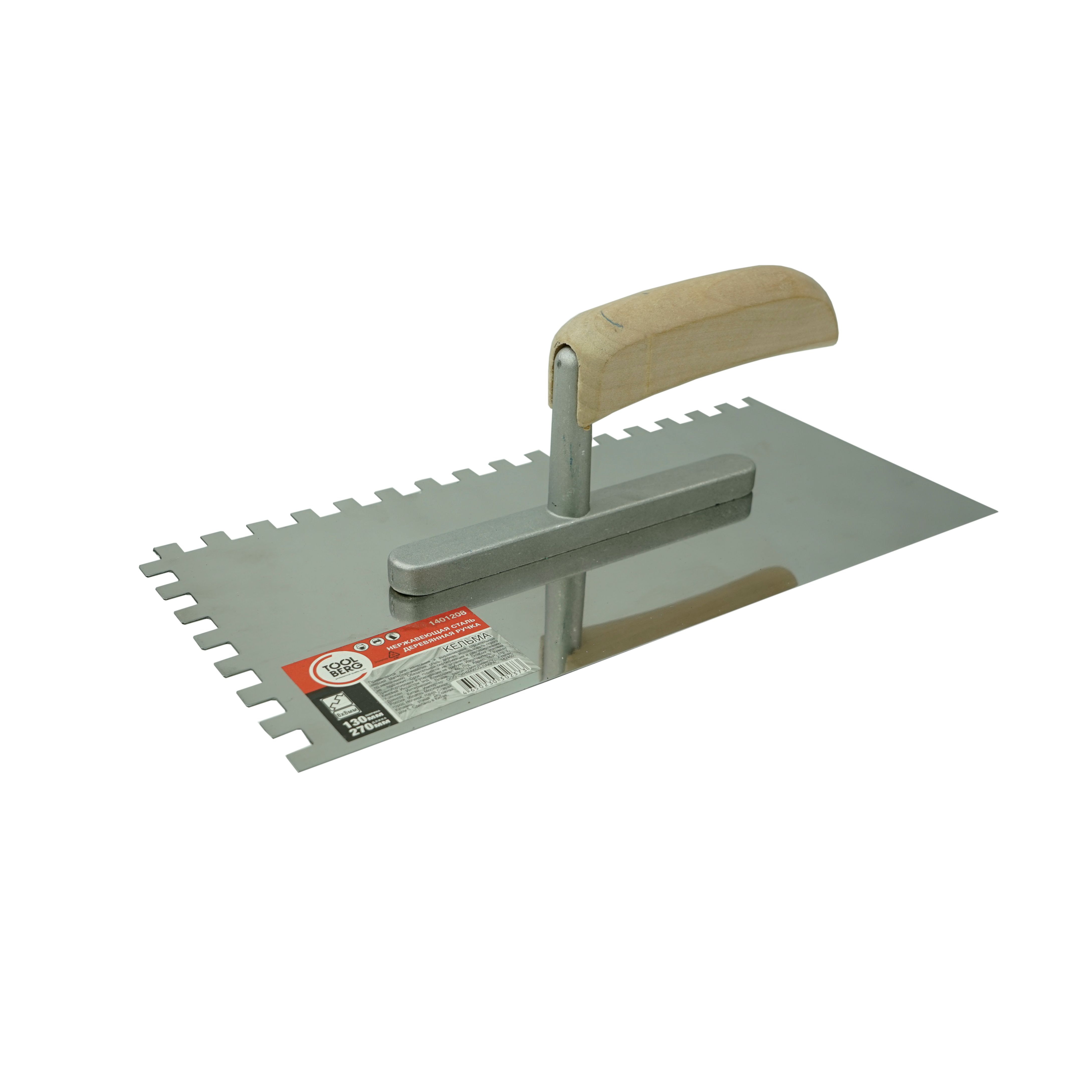 Кельма (ПиКьюТулс) нержавеющая сталь, деревянная ручка, 130х270мм, зуб 8х8мм