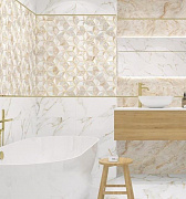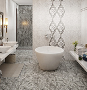Декор – плитка с рисунком, которая имеет такой же размер как и основная плитка и является элементом, который добавляет элегантность, яркость интерьеру.