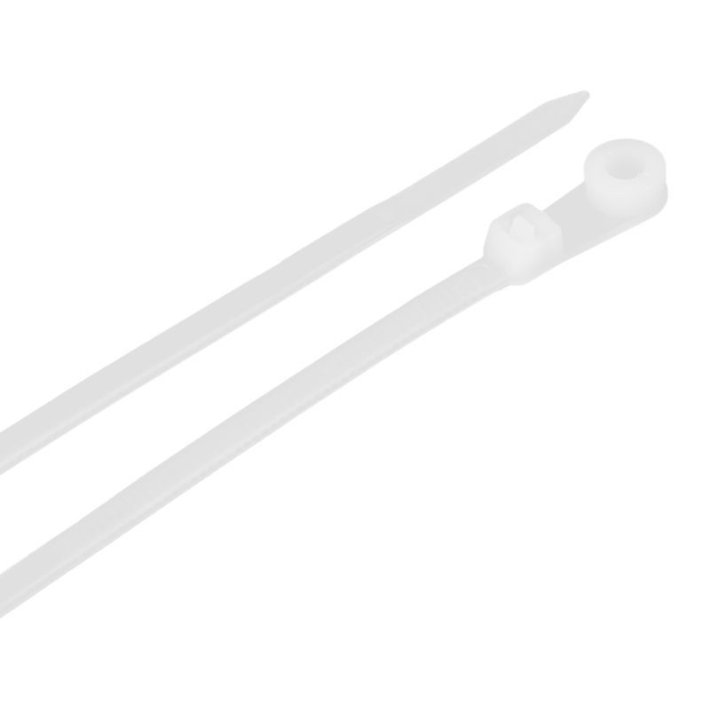 Хомут предназначен для крепления, бандажирования проводов и кабелей. Конец стяжки имеет отверстие для крепежа хомута к рабочей поверхности при помощи саморезов.