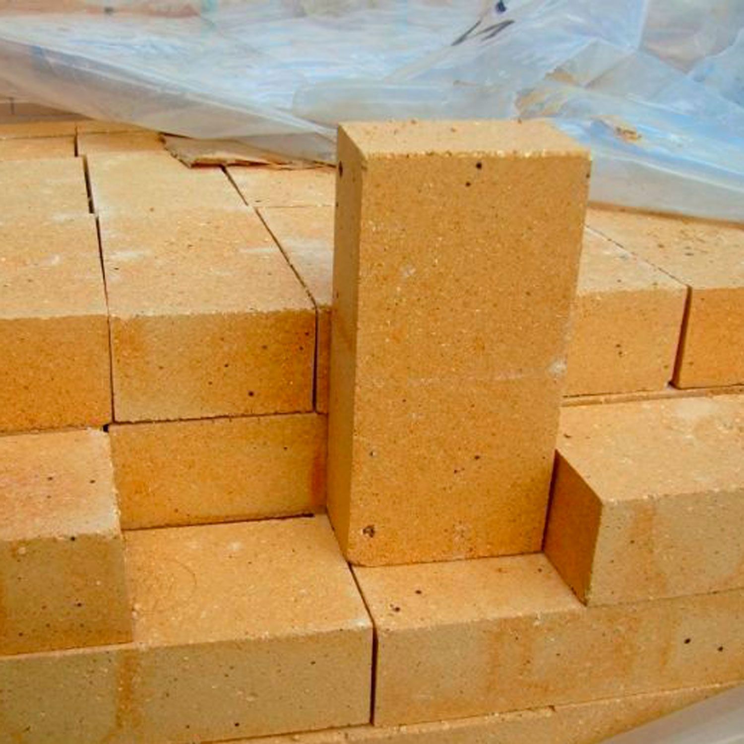 Шамотный кирпич состоит из смеси зерен шамота и огнеупорной глины, обожженный в печах при высокой температуре.