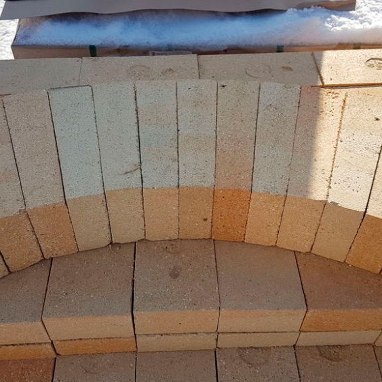 Шамотный кирпич состоит из смеси зерен шамота и огнеупорной глины, обожженный в печах при высокой температуре.