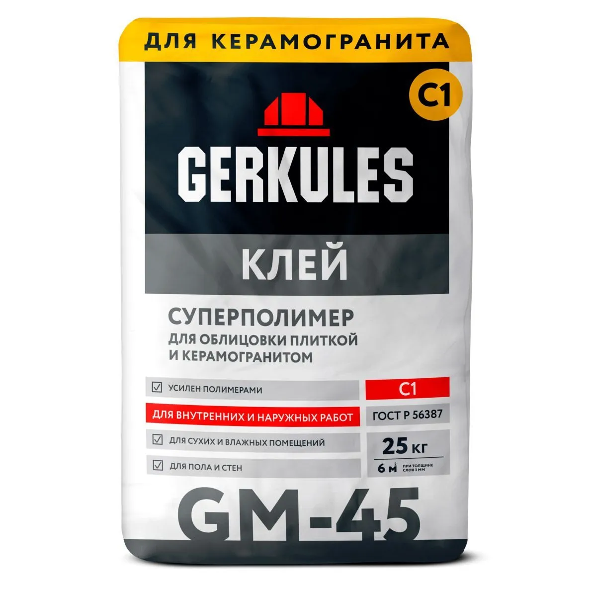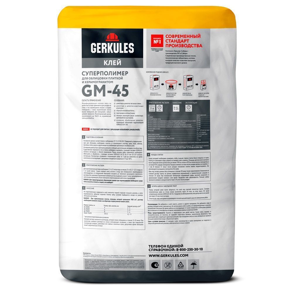 Клей Геркулес Суперполимер представляет собой порошкообразную смесь для последующего разведения. Состав используется для укладки керамической плитки и керамогранита, предназначен для наружных и внутренних работ. Обеспечивает прочное сцепление с минеральными основаниями (каменными, бетонными и газобетонными, кирпичными, отштукатуренными поверхностями).