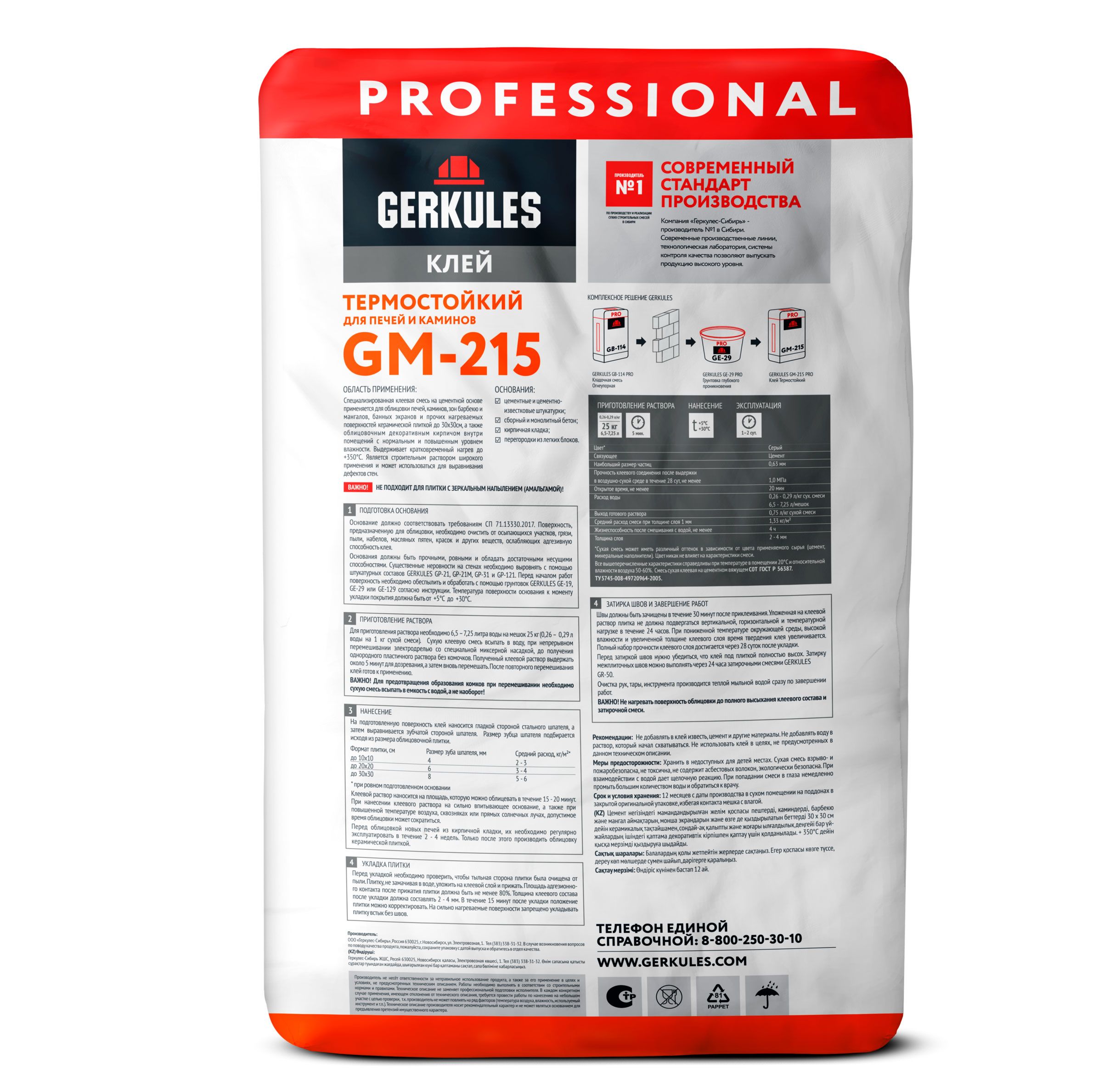 Термостойкий клей для печей и каминов GM-215 позволяет выполнить весь цикл работ: от кладки до затирки швов между облицовочной плиткой. Состав клея: цемент, кварцевый песок определенного фракционированный состава, минеральные и полимерные добавки ведущих европейских производителей. Клей можно колеровать пигментными пастами на водной основе.