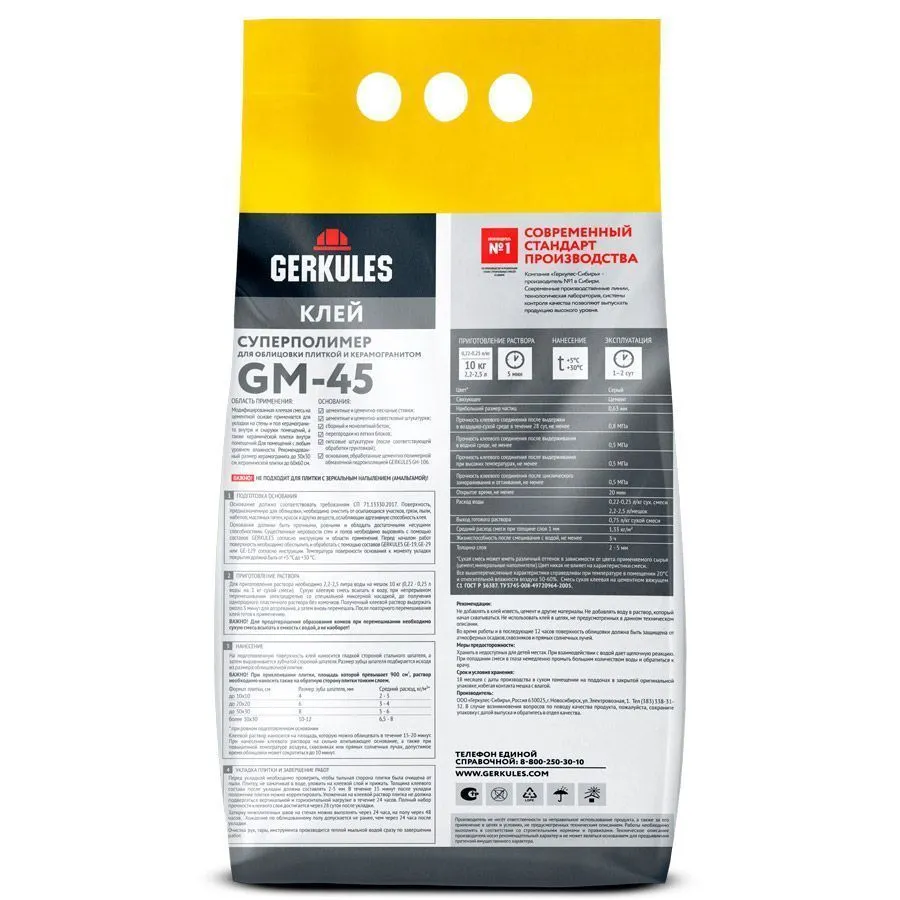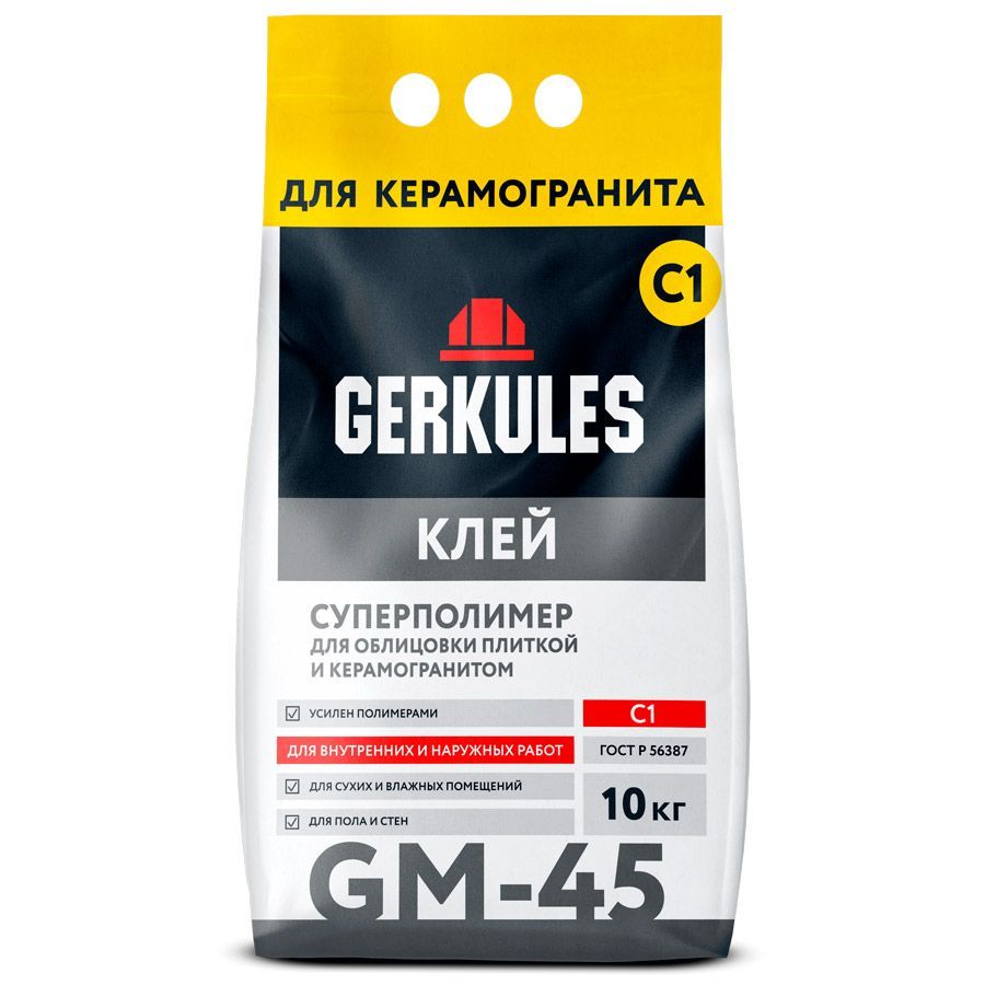 Клей Геркулес Суперполимер представляет собой порошкообразную смесь для последующего разведения. Состав используется для укладки керамической плитки и керамогранита, предназначен для наружных и внутренних работ. Обеспечивает прочное сцепление с минеральными основаниями (каменными, бетонными и газобетонными, кирпичными, отштукатуренными поверхностями).