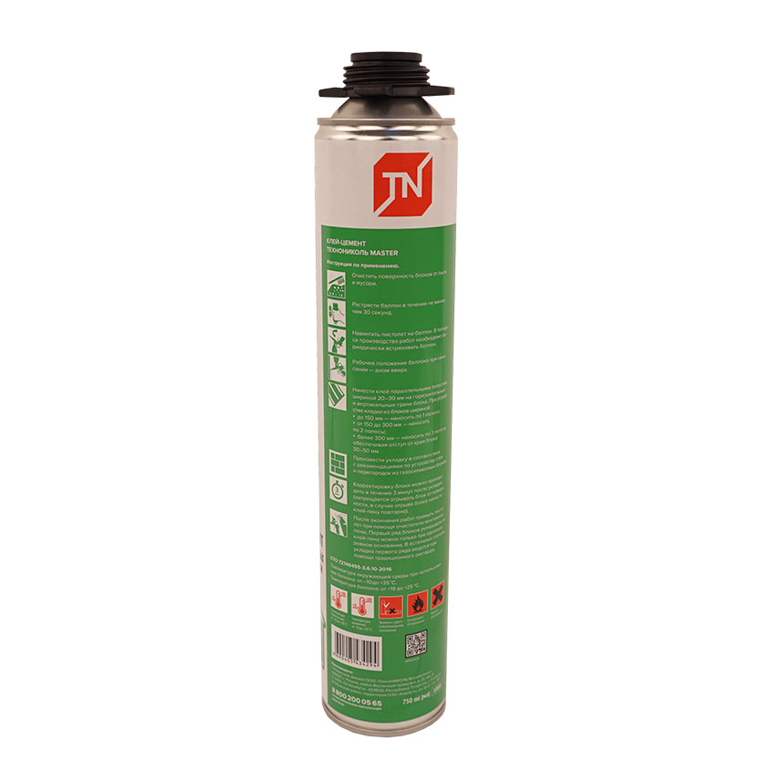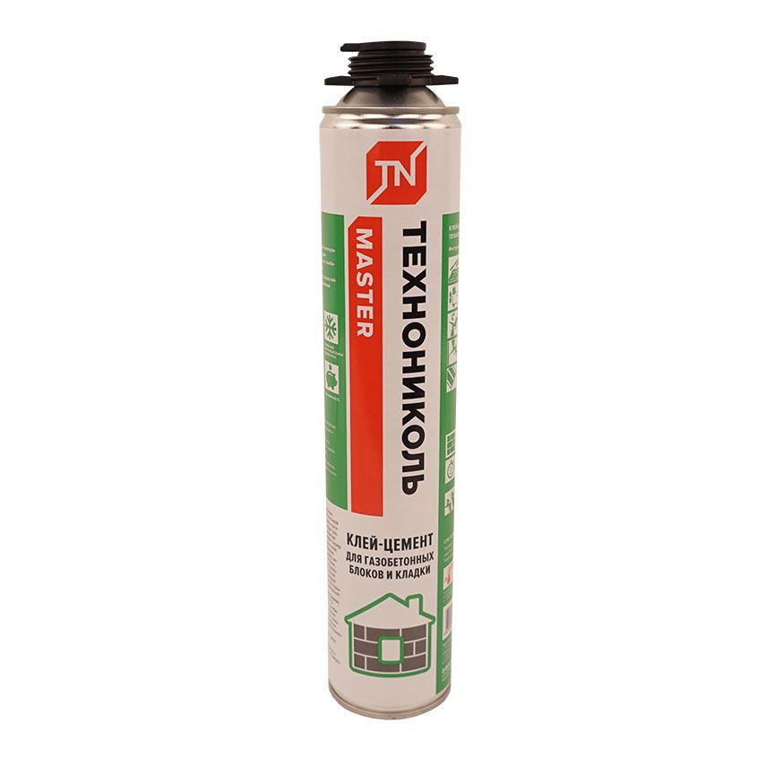Клей-Цемент ТЕХНОНИКОЛЬ MASTER — это готовый к применению однокомпонентный профессиональный полиуретановый клей в аэрозольной упаковке для устройства кладки перегородок из газобетонных, керамических и других блоков.