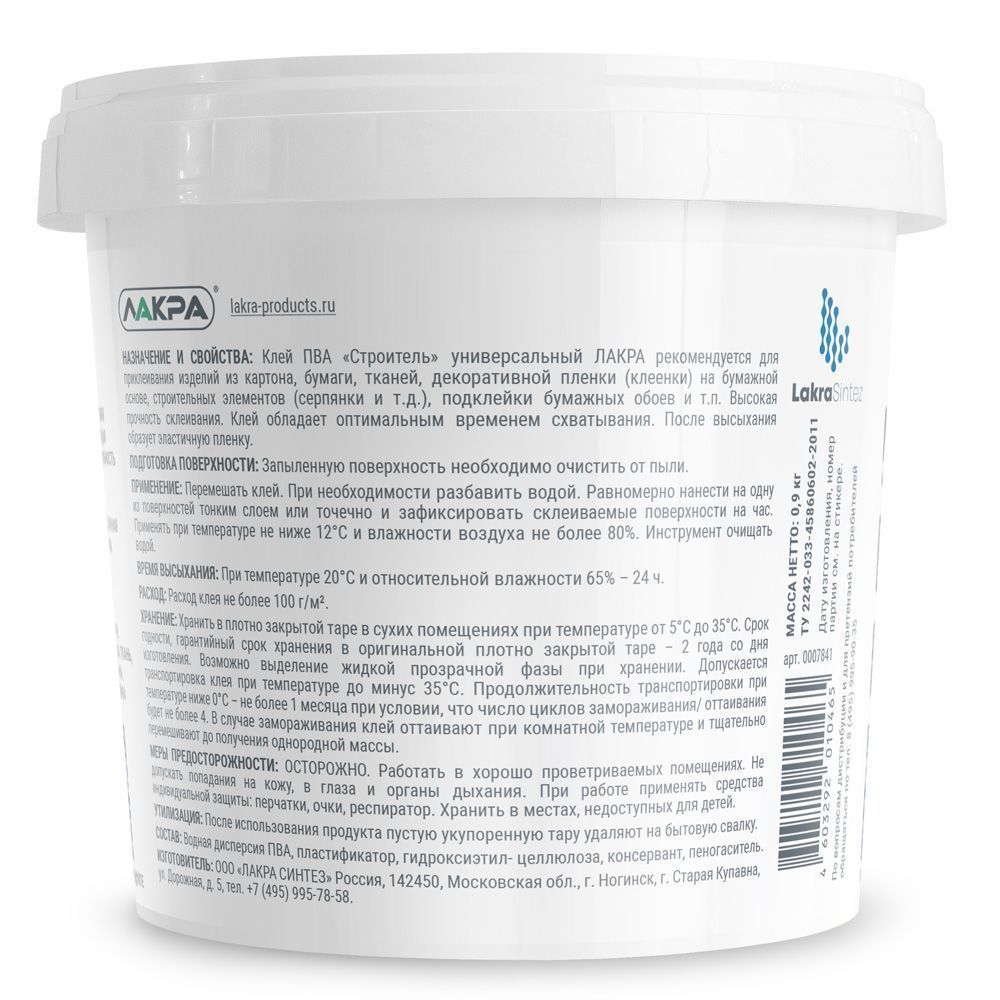 Клей ПВА Лакра Строитель – универсальный клей для внутренних и наружных работ.