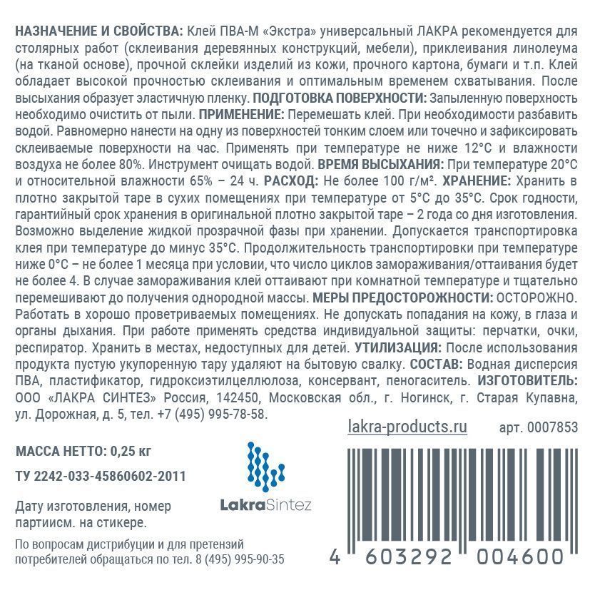 Клей ПВА Лакра универсальный Экстра 0,25кг цена - купить в Барнауле, Бийске. Размеры, характеристики, фото в интернет-магазине.