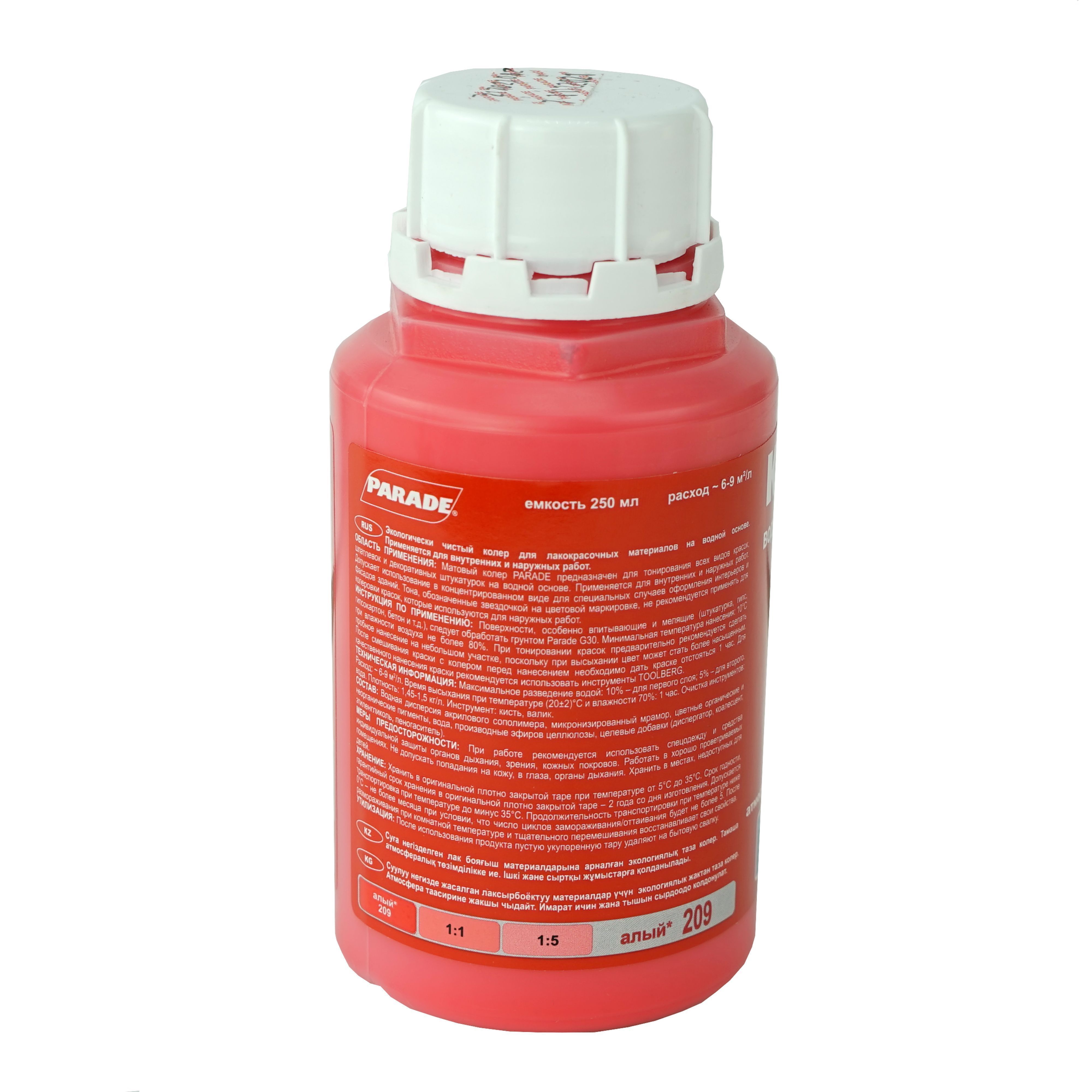 Колер-паста ПАРАД №209 Алый, для воднодисперсионной краски 0,25л. Экологически чистый колер для лакокрасочных материалов на водной основе. Состав: Водная дисперсия акрилового сополимера.