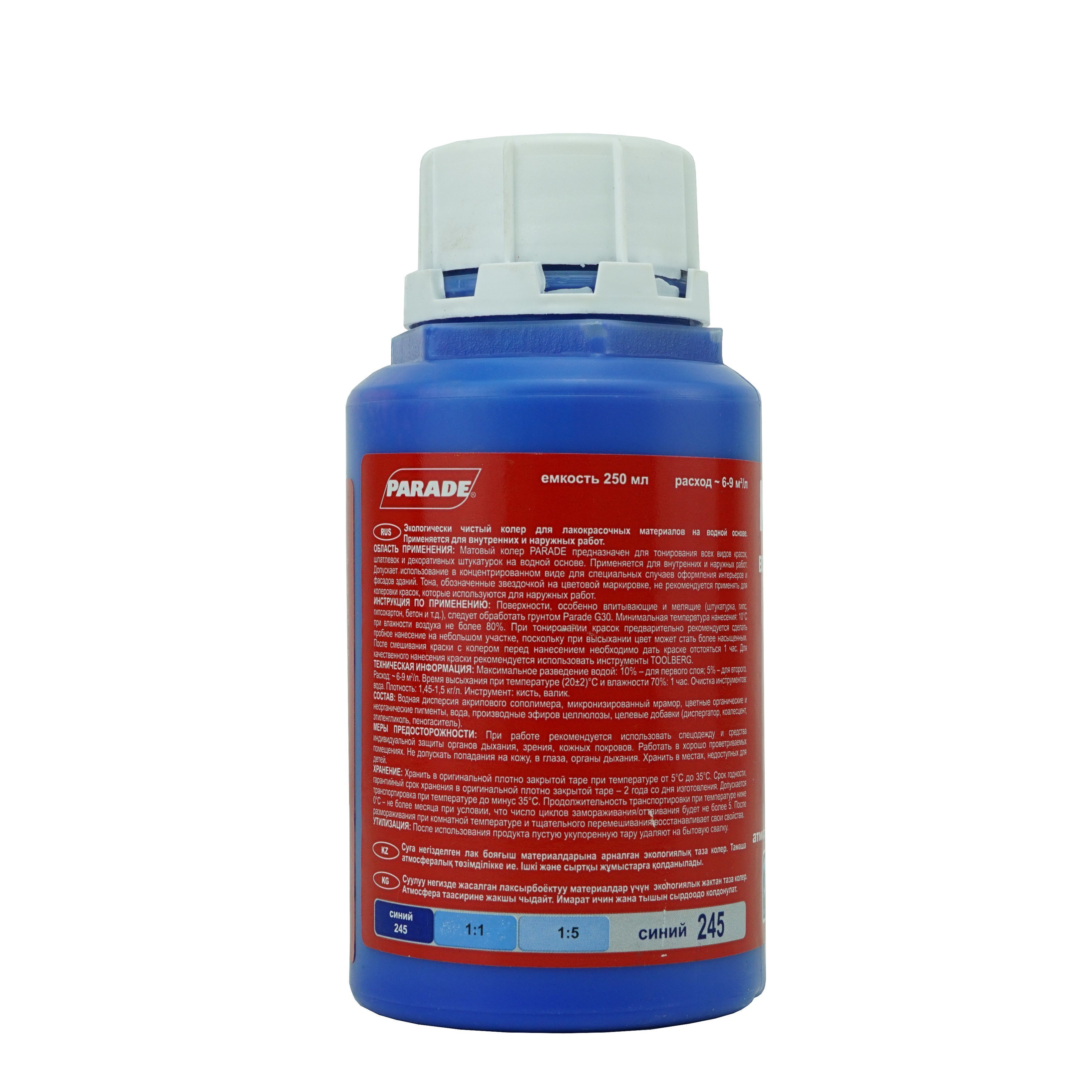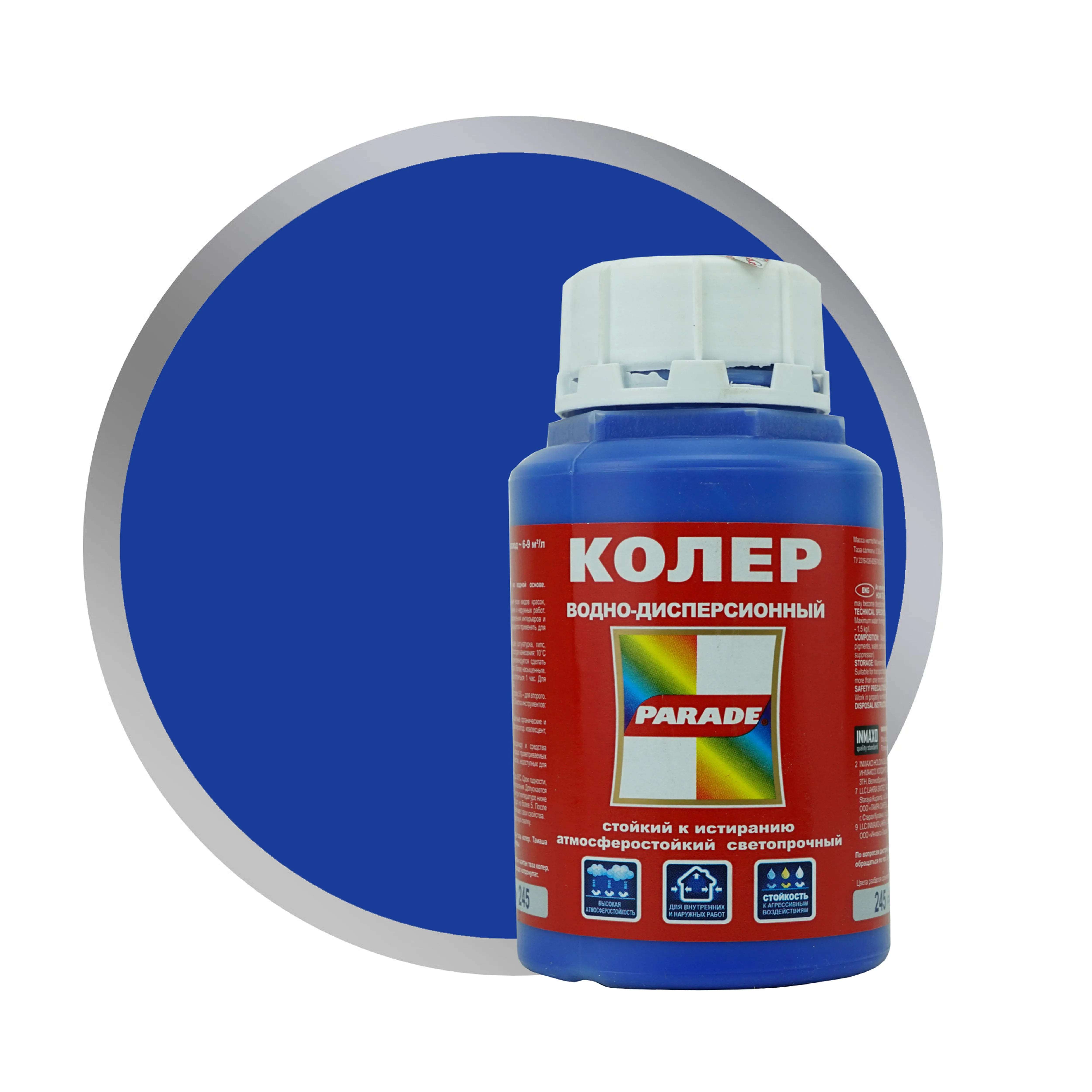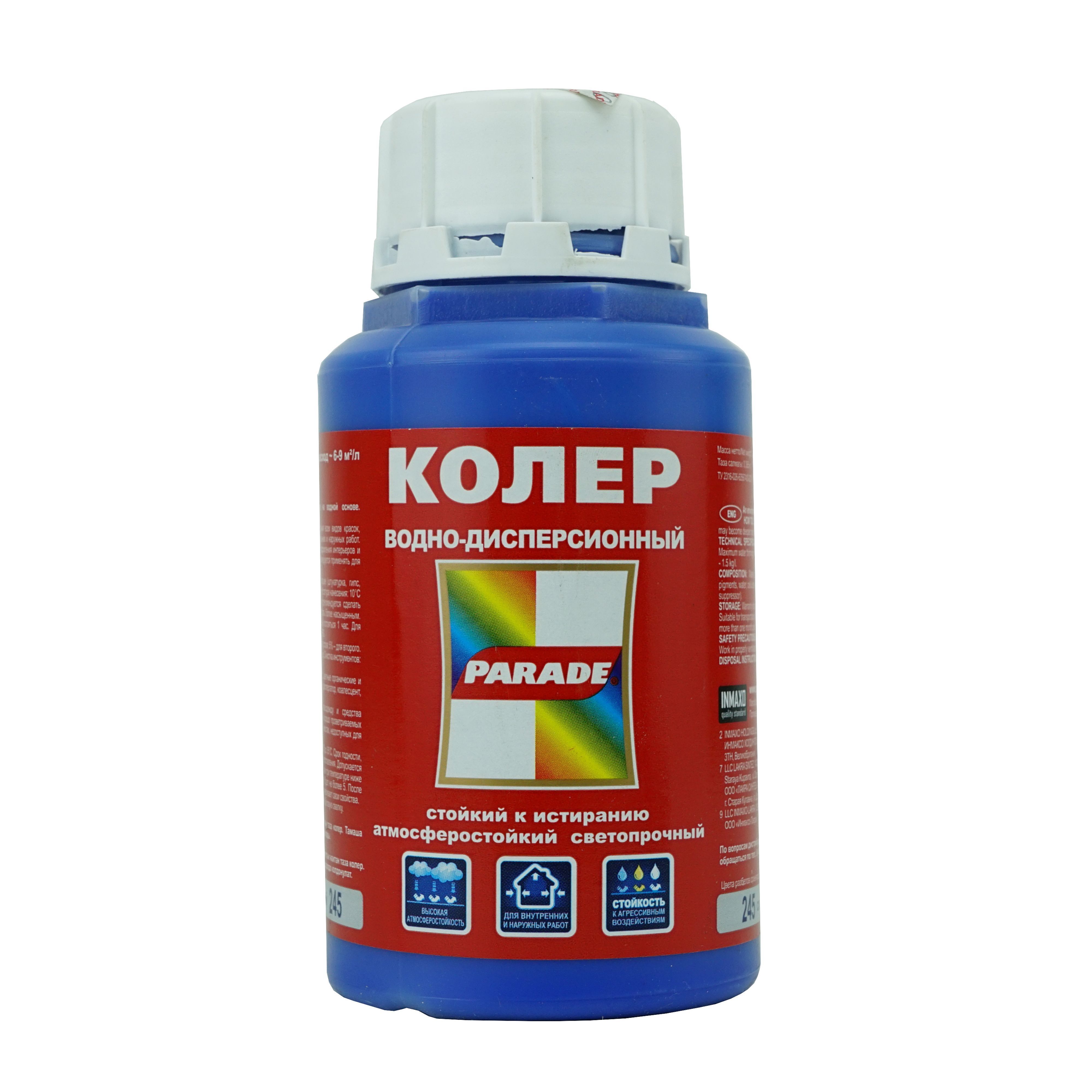 Колер-паста ПАРАД №245 Синий, для воднодисперсионной краски 0,25л. Экологически чистый колер для лакокрасочных материалов на водной основе. Состав: Водная дисперсия акрилового сополимера.