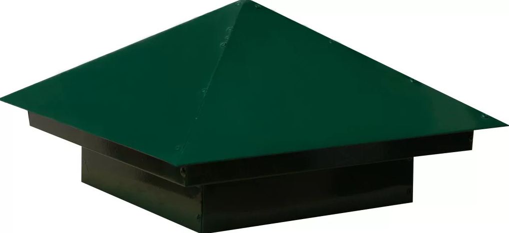 Колпак на столб с двойной юбкой представляет собой металлическое изделие пирамидальной формы для защиты столбов от атмосферных воздействий.