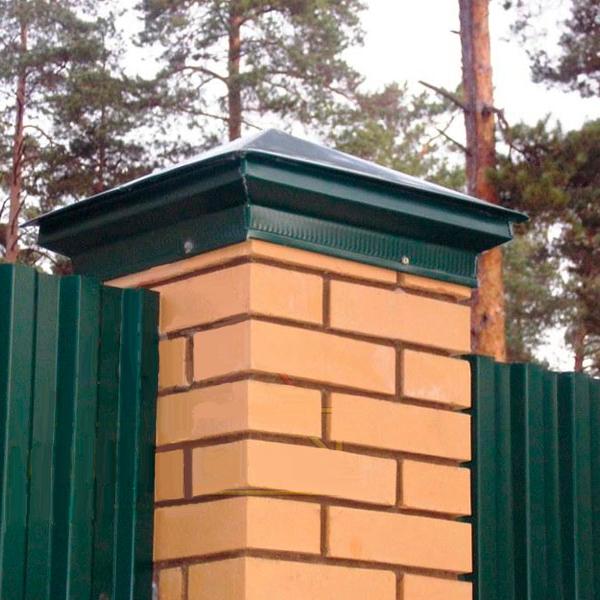 Защищает столб от дождя и ветра, добавляя аккуратности всему забору и продляя его срок службы.