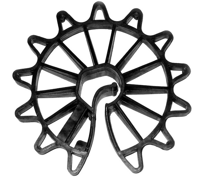 Фиксаторы устанавливаются непосредственно на арматуру перед заливкой бетонного раствора. Зажимная пластина обеспечивает их надежное крепление. Ребра жесткости повышают устойчивость к механическим деформациям и перепадам температуры.
