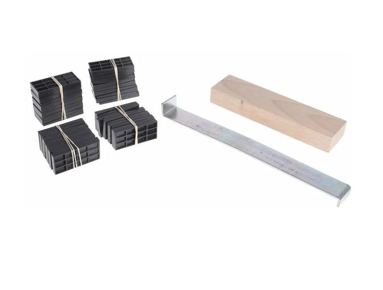 Клинья исключают деформацию покрытия, скобы обеспечивают маневренность работы, брусковые торцы не скошены, ластиковые клинья делают процесс более удобным, нежели их аналоги.