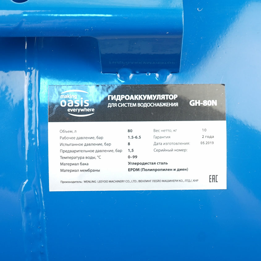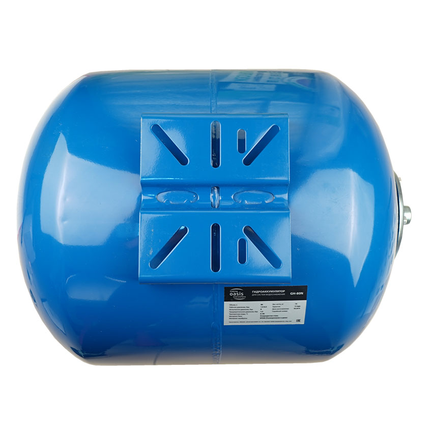 Горизонтальный гидроаккумулятор Oasis GH-80 поддерживает рабочее давление в индивидуальной системе водоснабжения и снижает риск возникновения гидроудара. Благодаря использованию прибора значительно сокращается необходимость запуска электрического насоса.