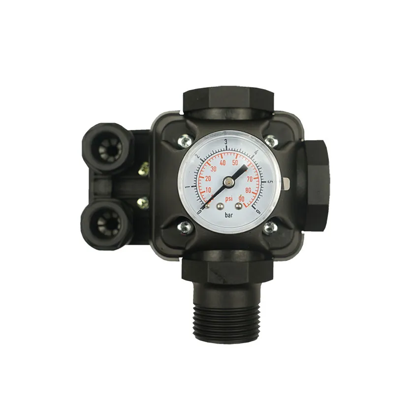 Предназначено для автоматического управления включением и выключением однофазных водяных насосов, мощностью до 1,5кВт. Встроенный манометр позволяет контролировать давление в системе водоснабжения, а трехвыводной штуцер обеспечивает простое и быстрое соединение устройства с насосом и гидроаккумулятором.