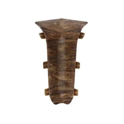 Угол выполнен из пластика, имитирующего фактуру и цвет дерева, в тон напольного плинтуса.