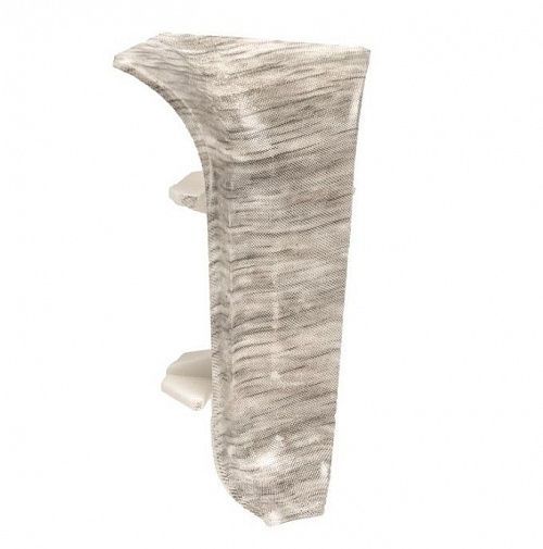 Угол выполнен из пластика, имитирующего фактуру и цвет дерева, в тон напольного плинтуса.