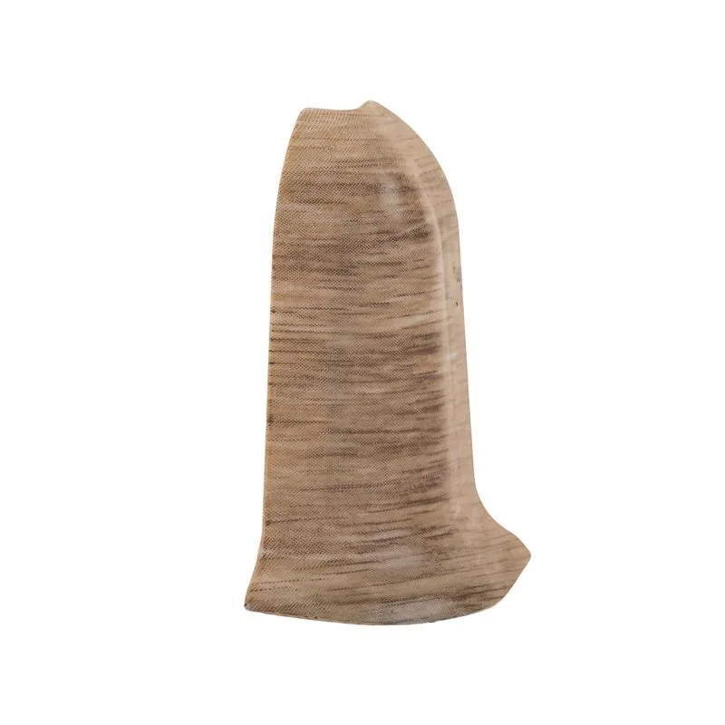 Угол выполнен из пластика, имитирующего фактуру и цвет дерева, в тон напольного плинтуса.