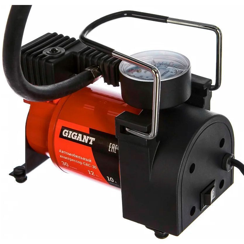 Автомобильный компрессор Gigant GAC-30 подойдет для длительных автомобильных поездок и позволит быстро наполнить воздухом спущенное колесо. Двигатель оснащен поршнем, что делает компрессор легким, но мощным.