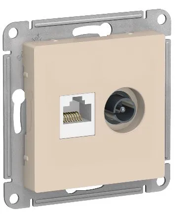 Двойная розетка с разъемами RJ45 категория 5е и TV от производителя Schneider Electric серии AtlasDesign.