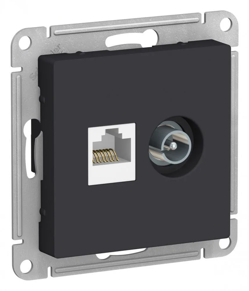 Двойная розетка с разъемами RJ45 категория 5е и TV от производителя Schneider Electric серии AtlasDesign.
