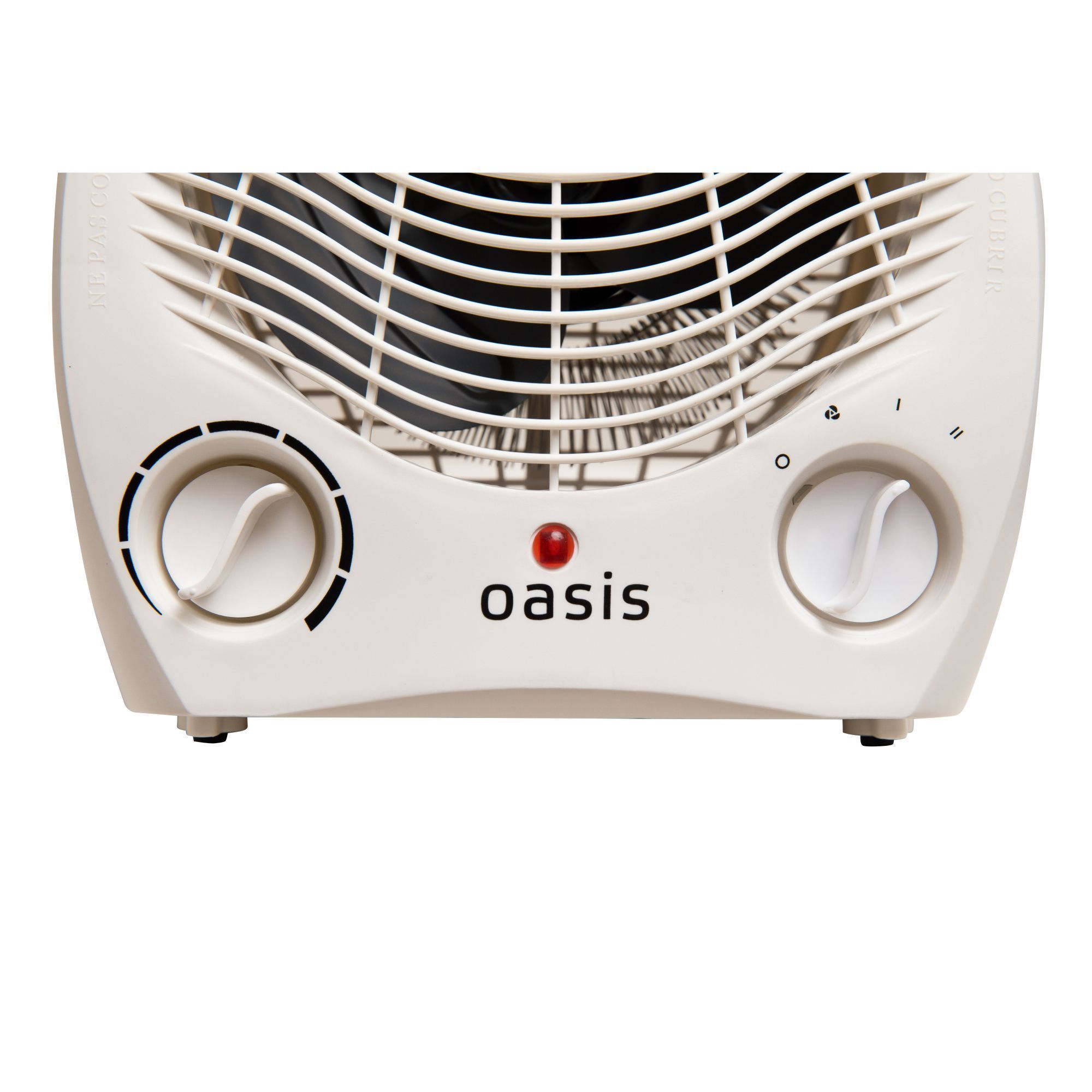 Тепловентиляторы «Oasis» – это компактные отопительные приборы, максимально простые в эксплуатации и чрезвычайно удобные для быстрого обогрева воздуха и создания комфортной атмосферы в помещении в холодное время года (ранняя весна, осень, зима). Имеют три режима работы: вентилятор, обогрев на пониженной и высокой мощности. Тепловентиляторы «Oasis» оснащены термостатом, что позволяет им автоматически поддерживать заданную температуру. Небольшие габариты позволяют без труда брать тепловентилятор с собой в дорогу (например, перевозить на дачу).