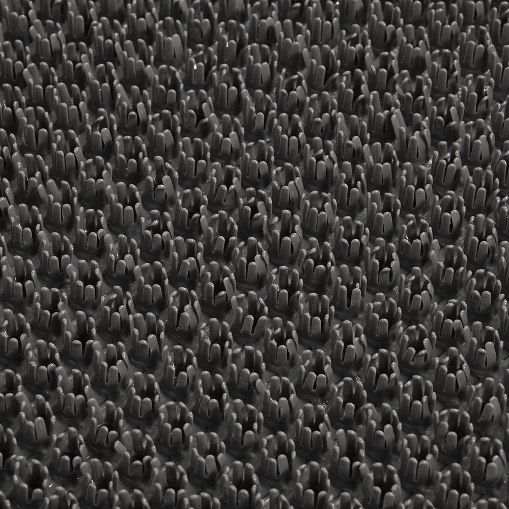 Благодаря шипам и рельефной поверхности отлично очищает обувь от грязи и песка при входе в помещение. Легко моется водой. Не скользит. Щетина изготовлена из полиэтилена, подложка из полипропилена. Коврик не боится воздействия солнца, реагентов, мороза и жары.