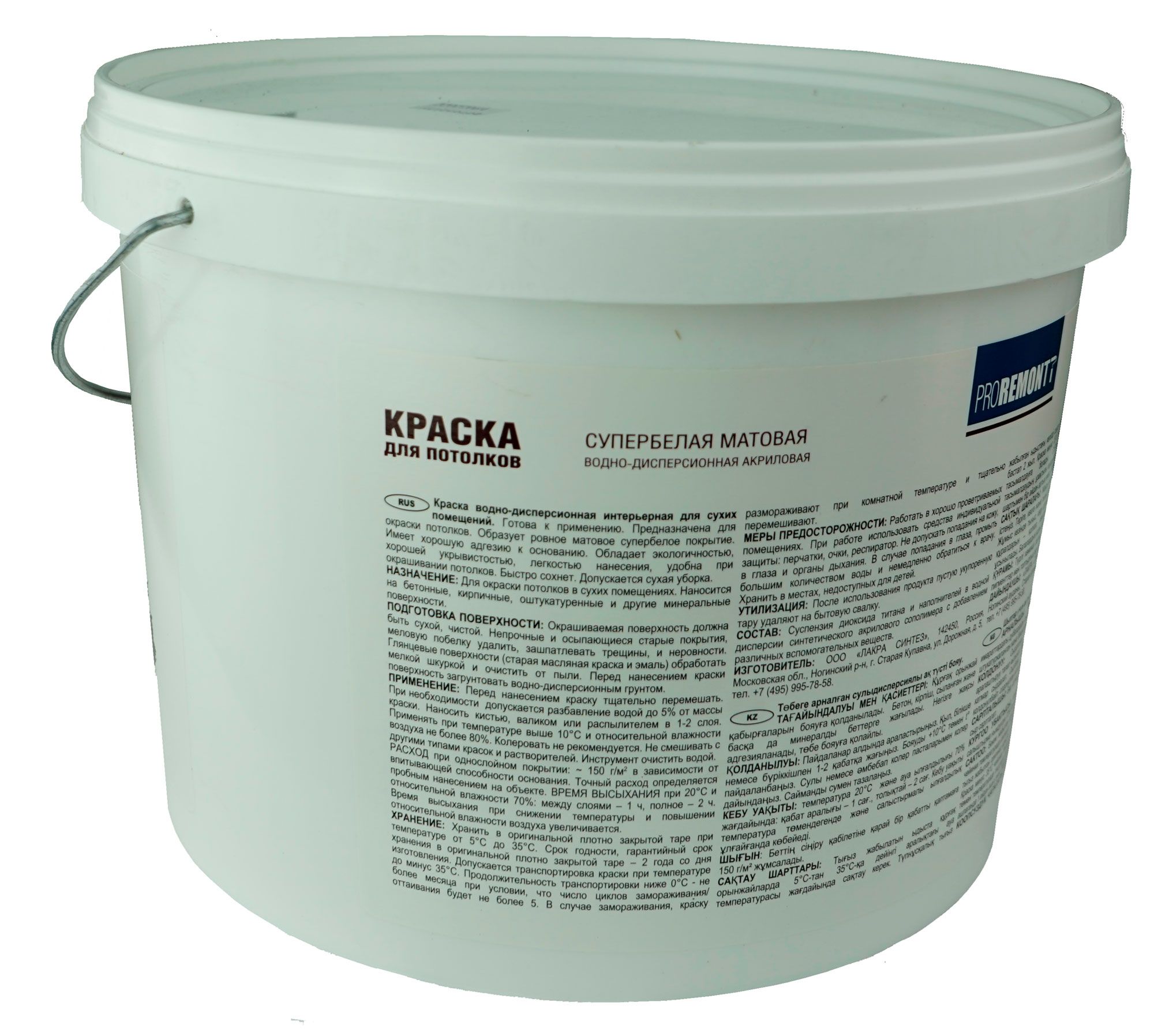 Краска водно-дисперсионная интерьерная для сухих помещений. Готова к применению. Предназначена для окраски потолков. Образует ровное матовое супербелое покрытие. Имеет хорошую адгезию к основанию. Обладает экологичностью, хорошей укрывистостью, легкостью нанесения, удобна при окрашивании потолков. Быстро сохнет. Допускается сухая уборка.
