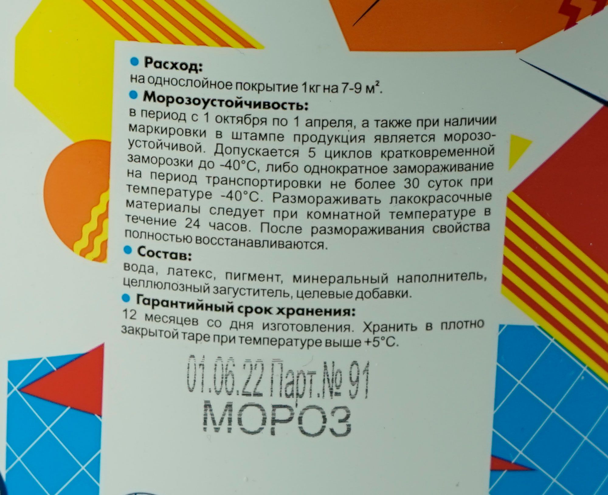 Латексная краска для потолков и верхних частей стен в жилых и административных помещениях по бетону, кирпичу, дереву, штукатурке, ДВП, ДСП, гипсокартону и т.д. Имеет хорошую укрывистость, матовое покрытие. Улучшенные свойства и белизна. Допускается подколеровка пигментными пастами.